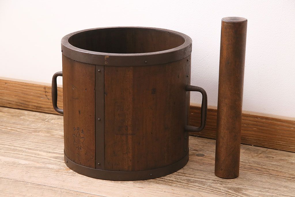 アンティーク雑貨 時代の味を感じる存在感抜群の斗棒付き一斗枡(一斗マス)(R-048827)