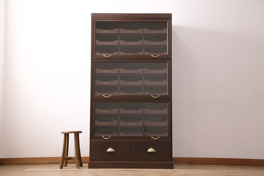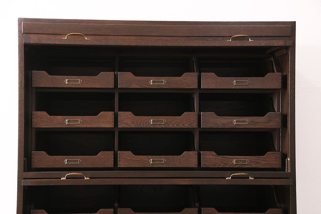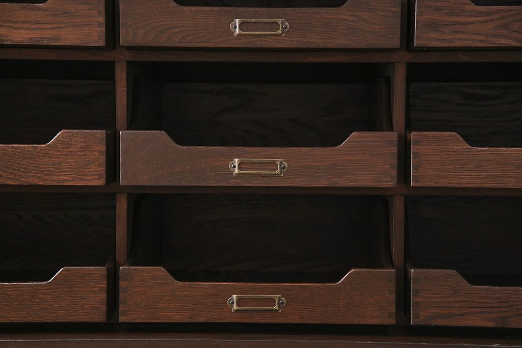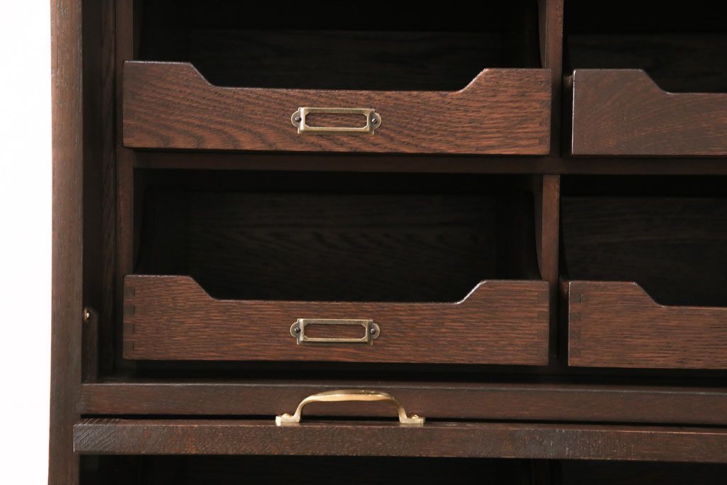 イギリスアンティーク人気デザイン再現製作 上品な佇まいが高級感を醸し出すオーク材製縦型シャツケース(ガラスケース、ショーケース、チェスト)(R-048772)