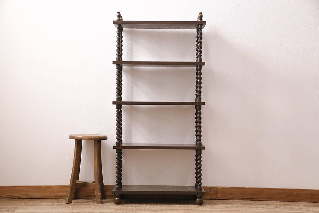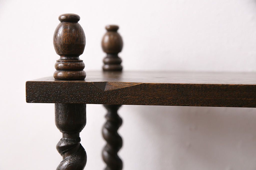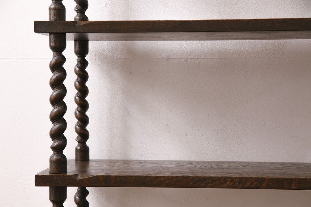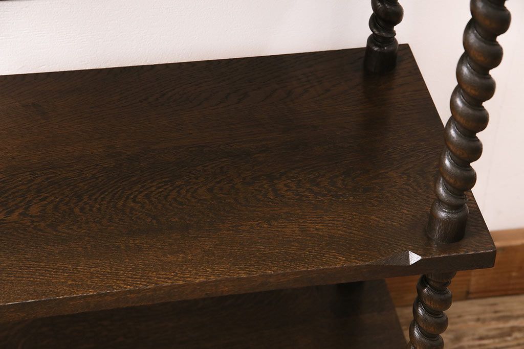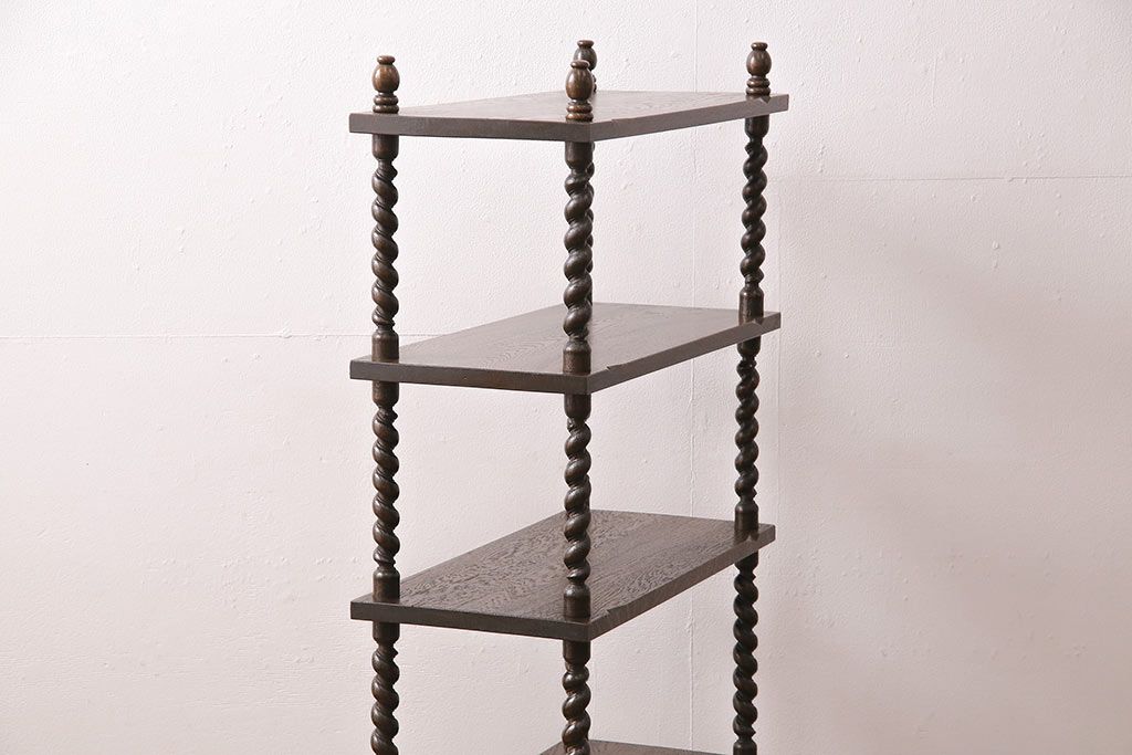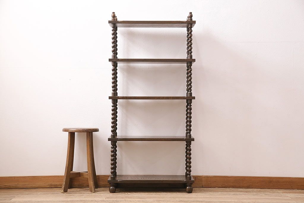 アンティーク家具 ナラ材 和製では珍しい!!高級感漂うツイストレッグのオープンラック(飾り棚、陳列棚)(R-48760)