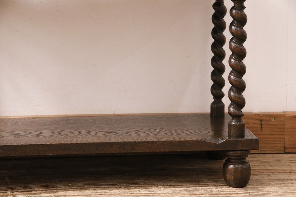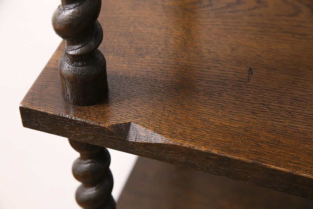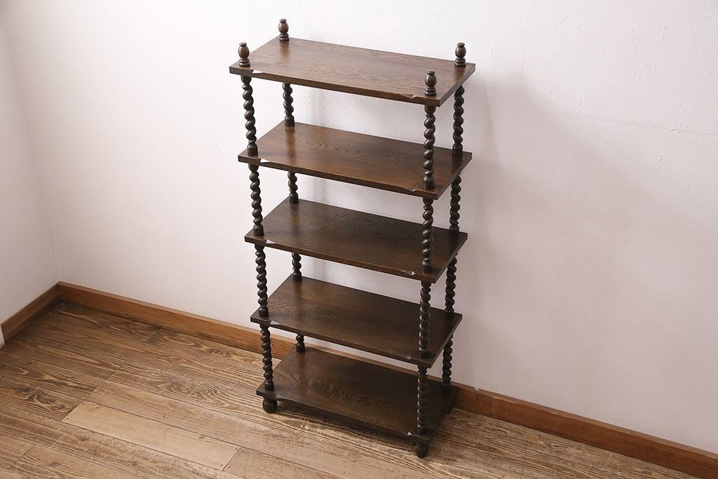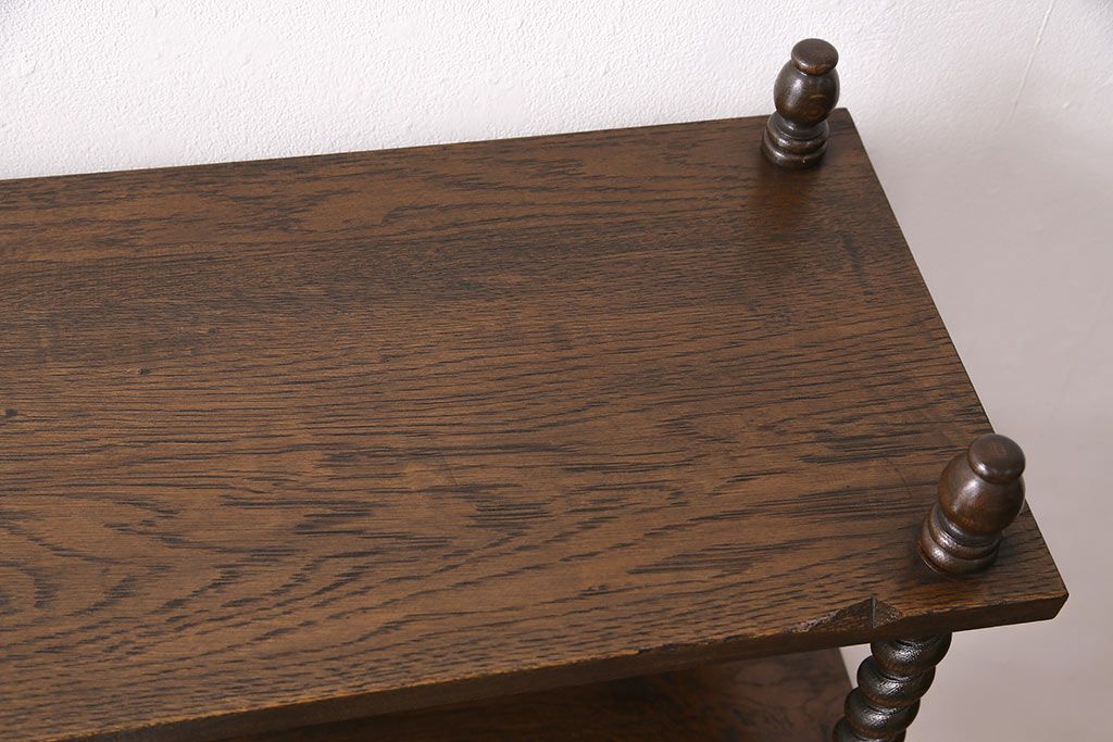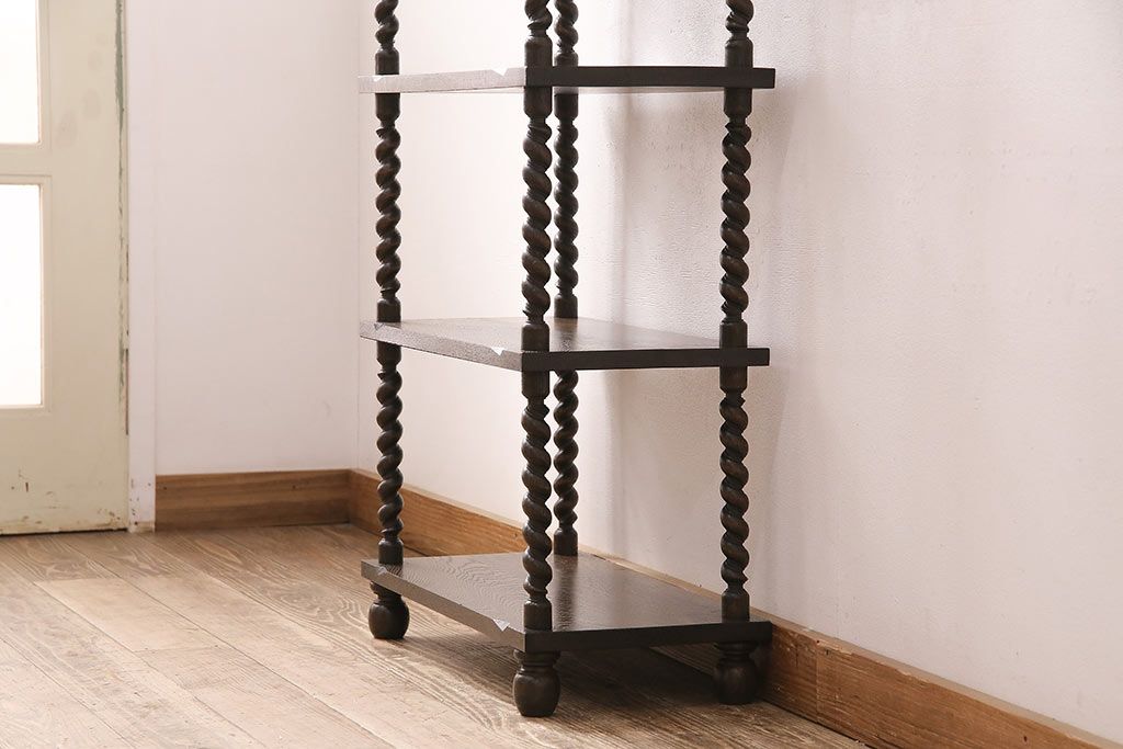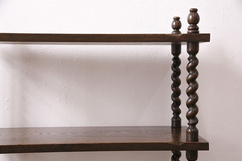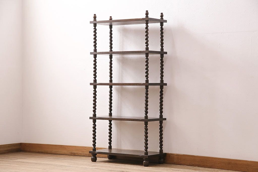 アンティーク家具 ナラ材 和製では珍しい!!高級感漂うツイストレッグのオープンラック(飾り棚、陳列棚)(R-48760)