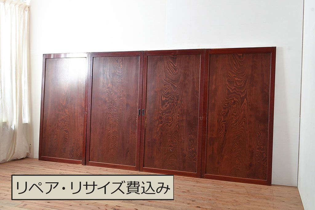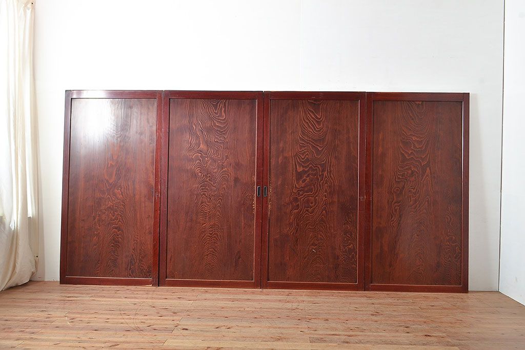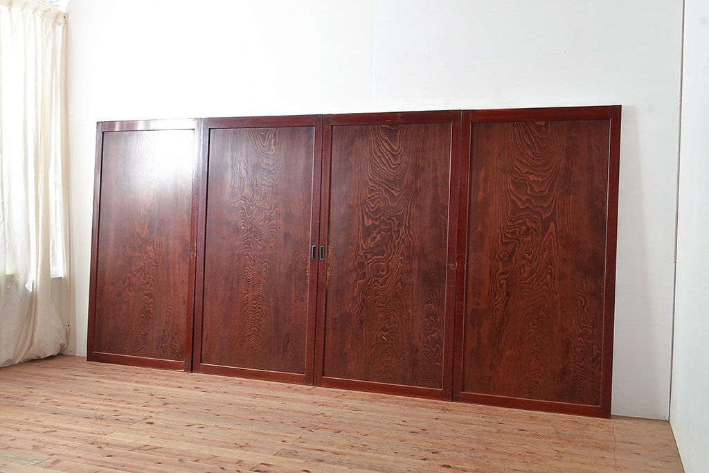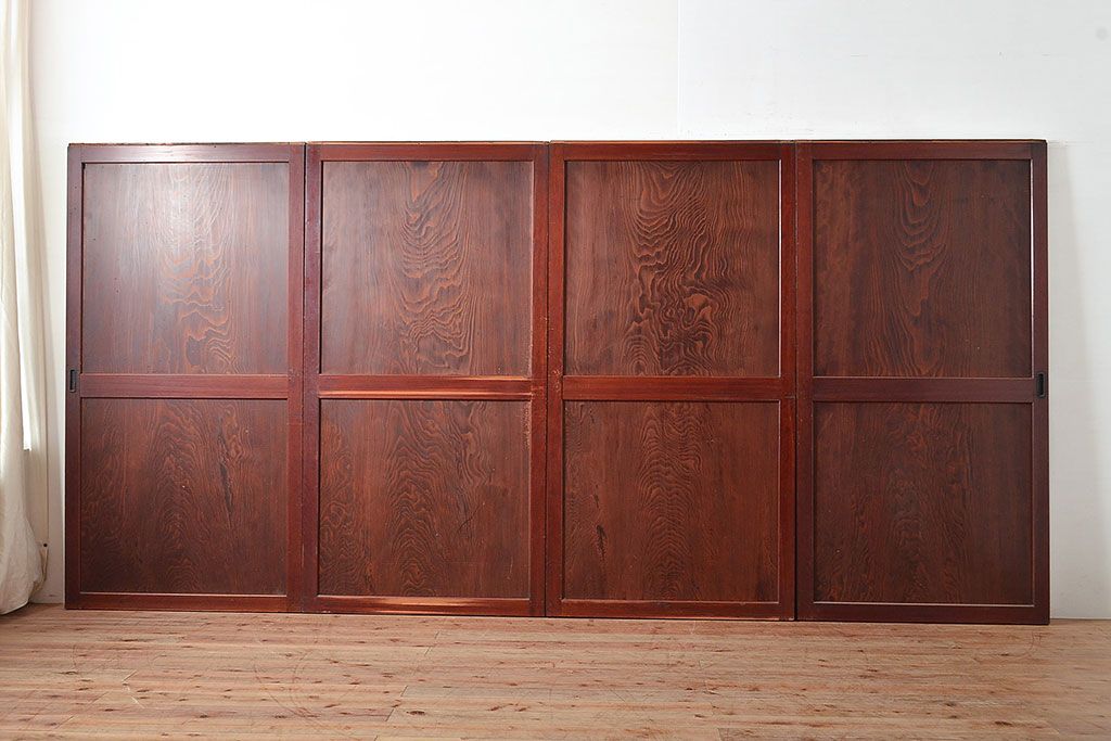アンティーク建具 漆塗りの艶やかさが高級感を演出する杉材の板戸4枚セット(引き戸、建具)(R-048273)