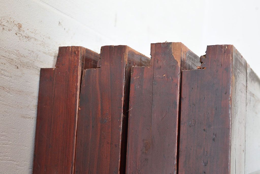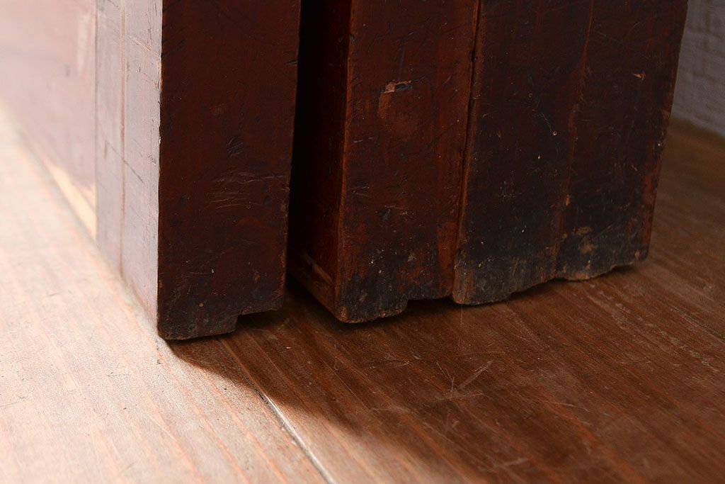 状態が気になる方には現状販売はおすすめできませんので、慎重なご検討をお願いいたします。アンティーク建具 漆塗りの艶やかさが高級感を演出する杉材の板戸4枚セット(引き戸、建具)(R-048273)です。