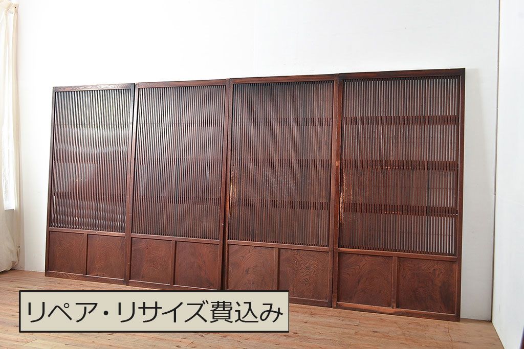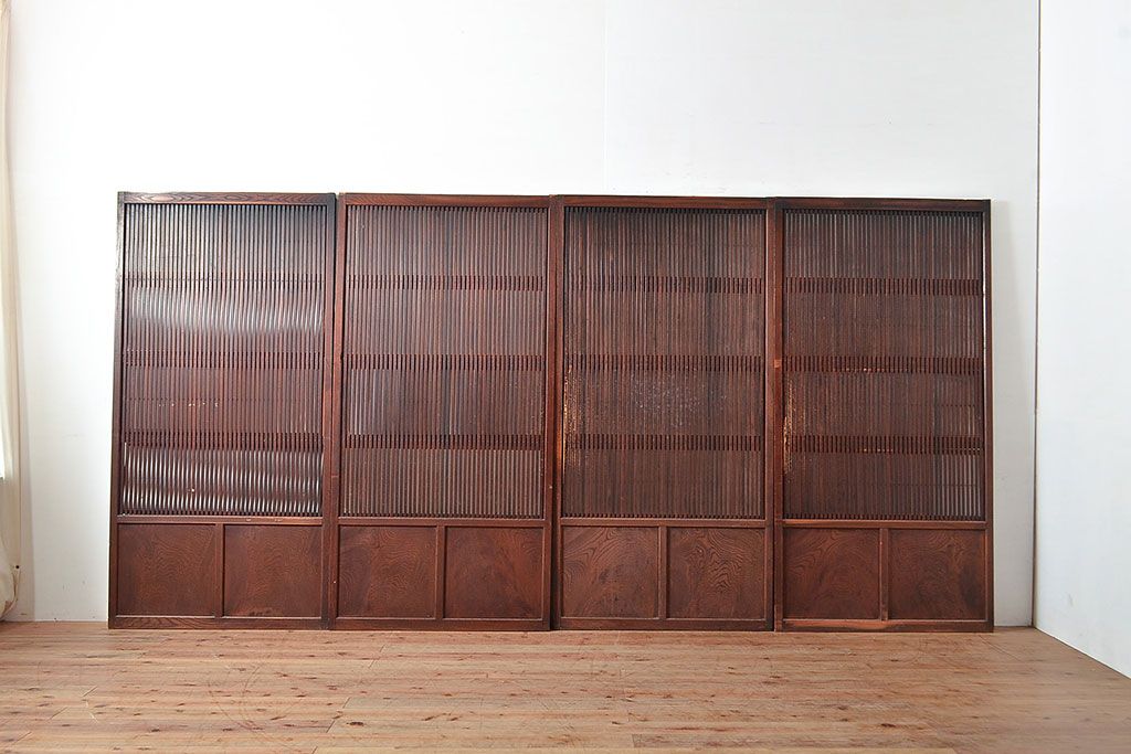 アンティーク建具 上手物!ケヤキ材が使われた和の趣溢れる格子戸4枚セット(障子戸、引き戸、建具)(R-048274)