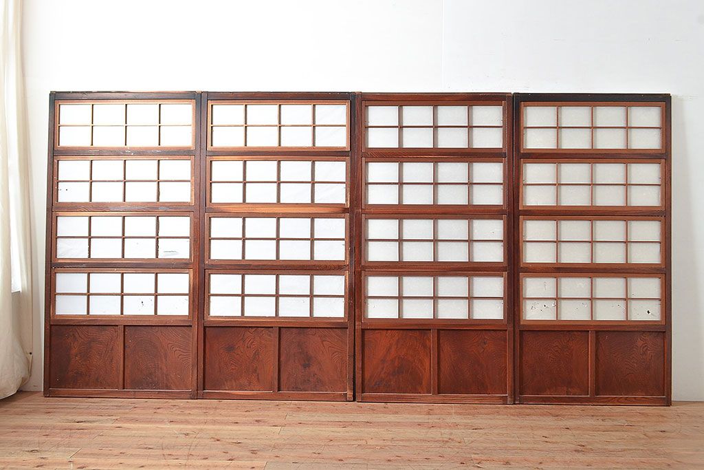 ラフジュ工房> ドア・建具> 障子戸 > アンティーク建具 上手物!ケヤキ材が使われた和の趣溢れる格子戸4枚セット(障子戸、引き戸、建具)(R-048274)