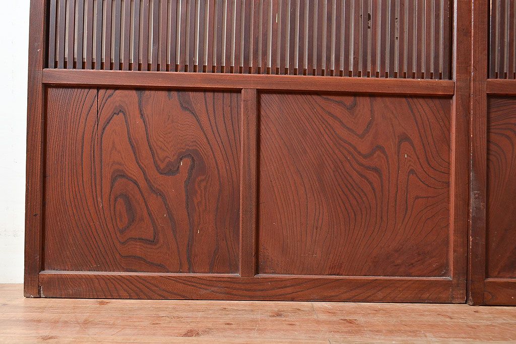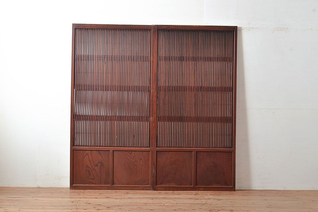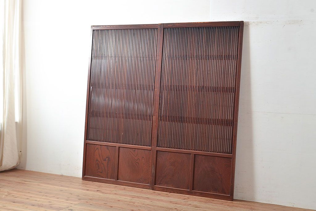 アンティーク建具 上手物!ケヤキ材が使われた和の趣溢れる格子戸2枚セット(障子戸、引き戸、建具)(R-048275)