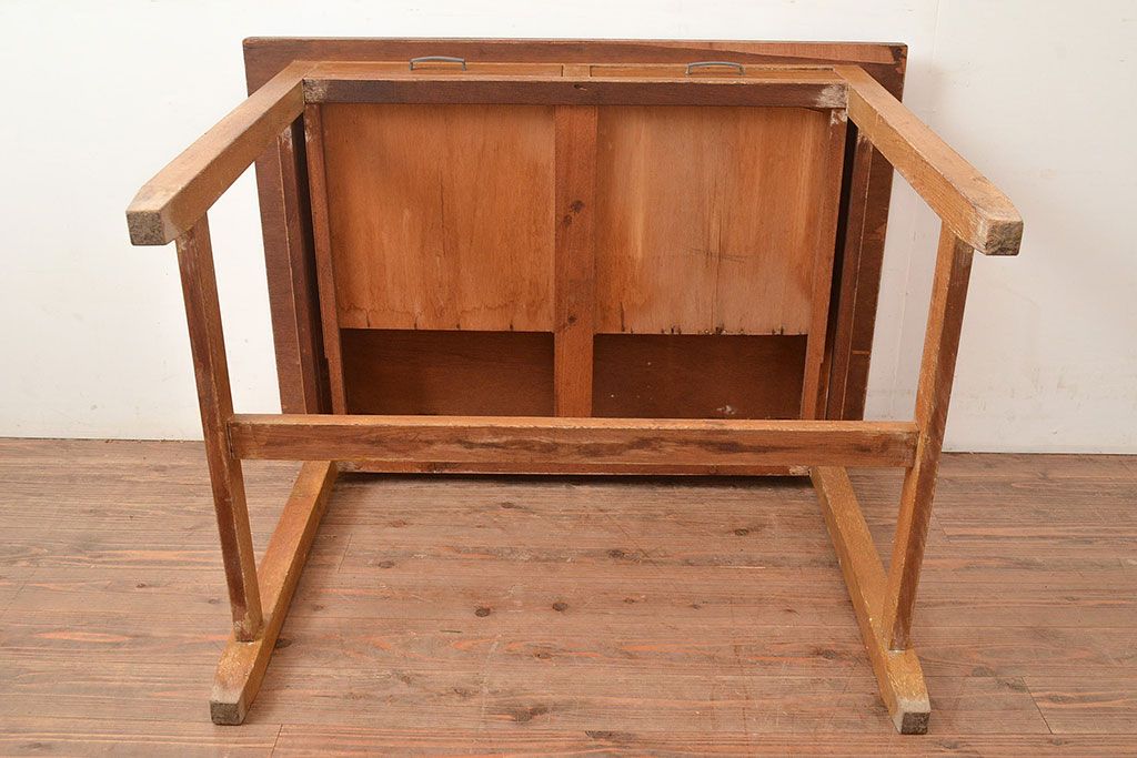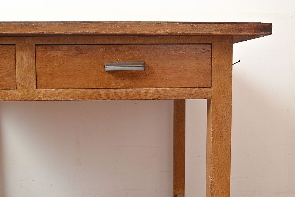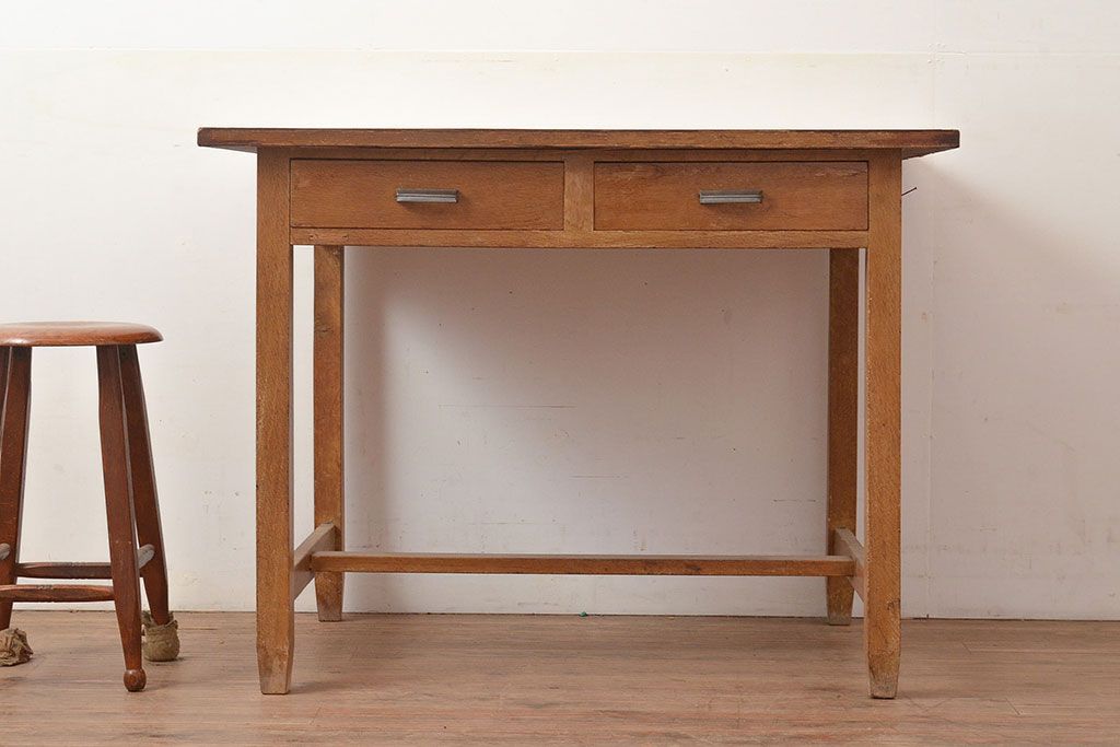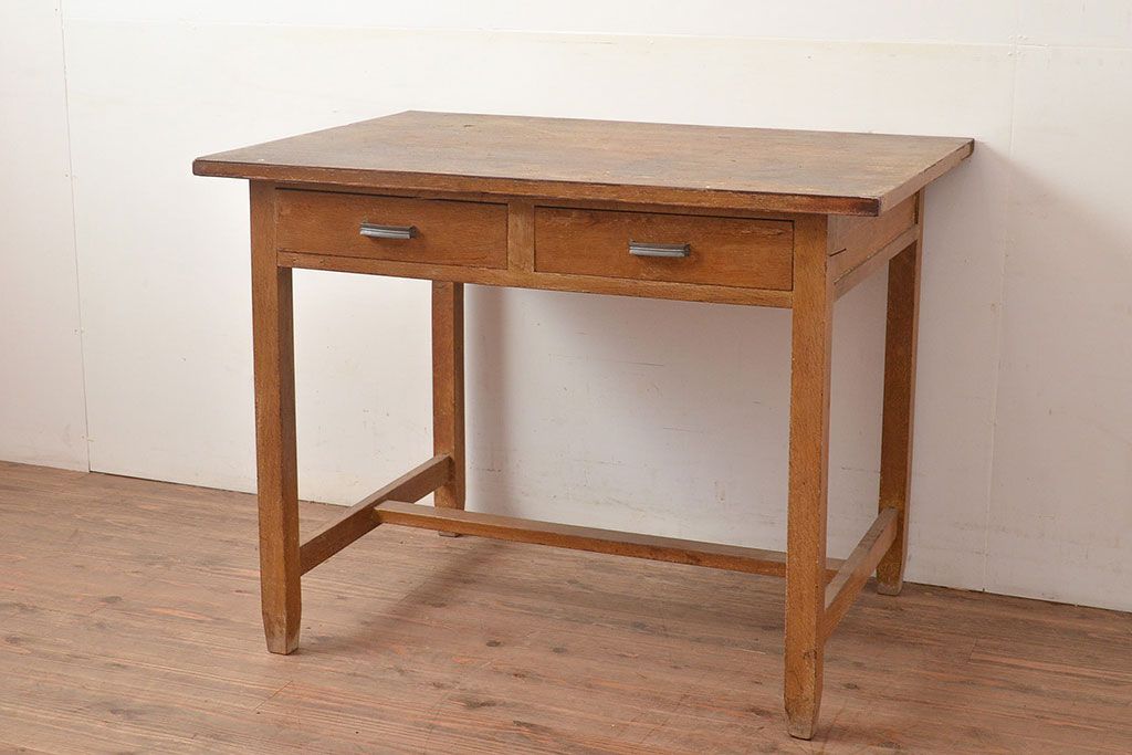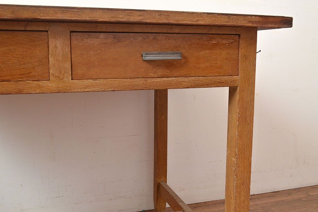デスク> 子供机 > 昭和レトロ 味わい深い佇まいが懐かしい空間づくりを叶える、ナラ材製の机(学習机、在宅ワーク、在宅用平机、在宅ワーク、在宅用ワークデスク)(R-047959)