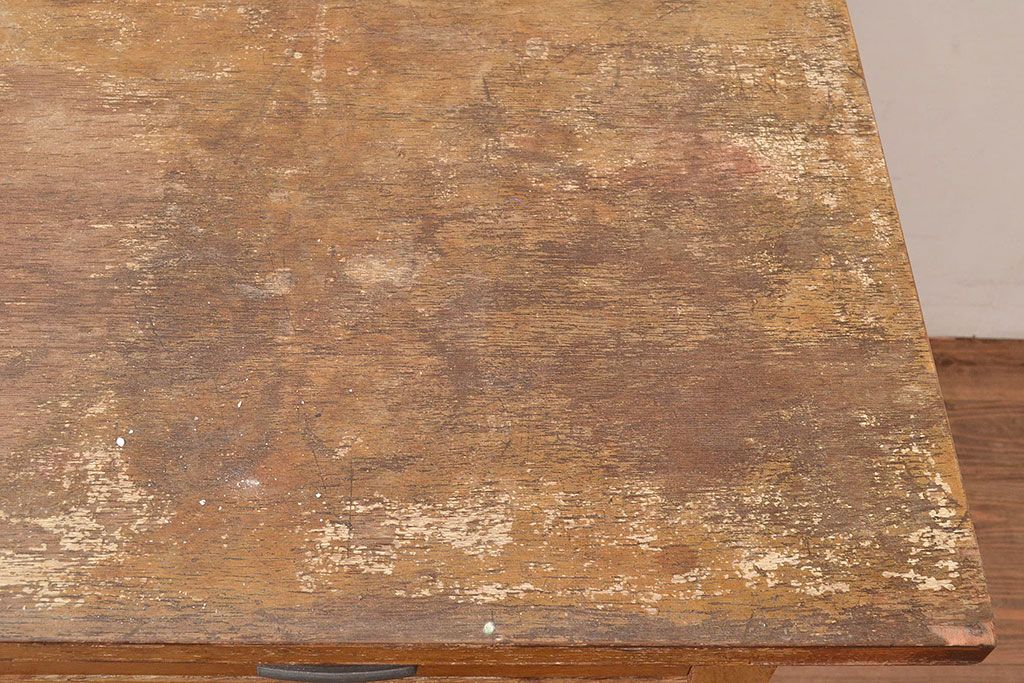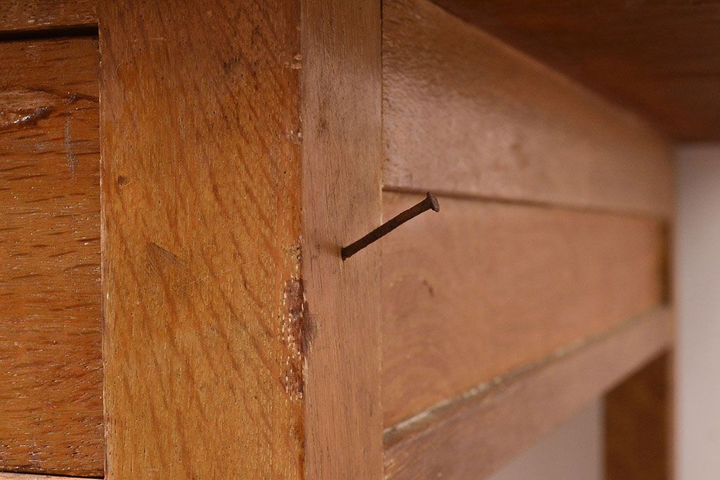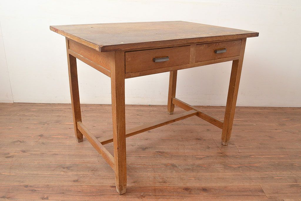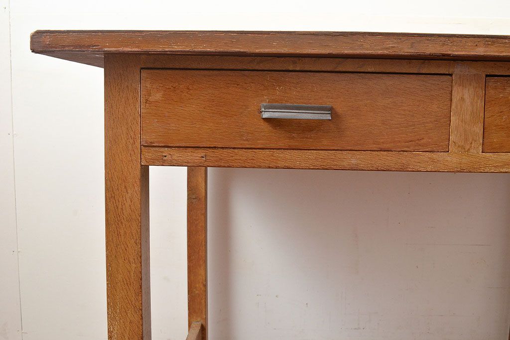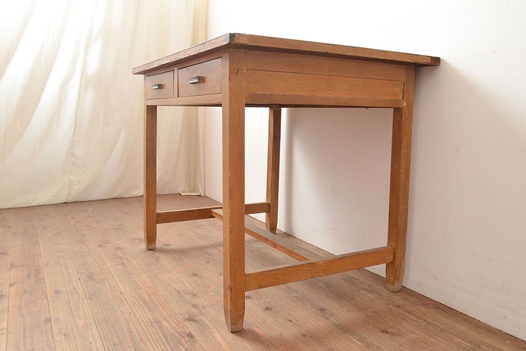 デスク> ワークデスク > 昭和レトロ 味わい深い佇まいが懐かしい空間づくりを叶える、ナラ材製の机(学習机、在宅ワーク、在宅用平机、在宅ワーク、在宅用ワークデスク)(R-047959)