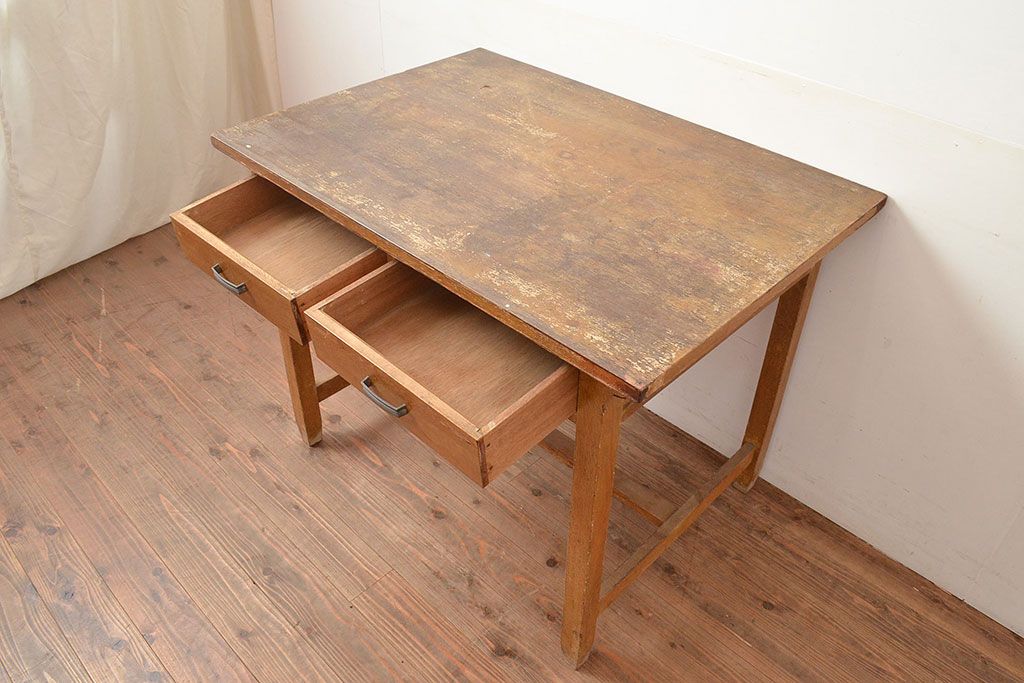 昭和レトロ 味わい深い佇まいが懐かしい空間づくりを叶える、ナラ材製の机(学習机、平机、ワークデスク)(R-047959)です。