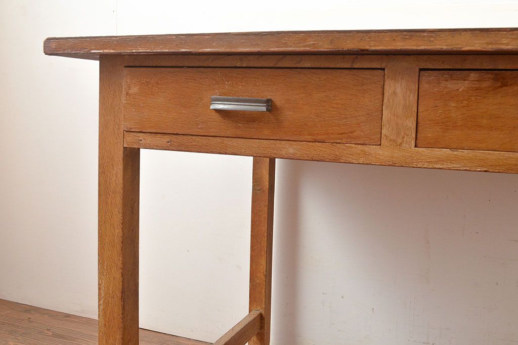 昭和レトロ 味わい深い佇まいが懐かしい空間づくりを叶える、ナラ材製の机(学習机、在宅ワーク、在宅用平机、在宅ワーク、在宅用ワークデスク)(R-047959)