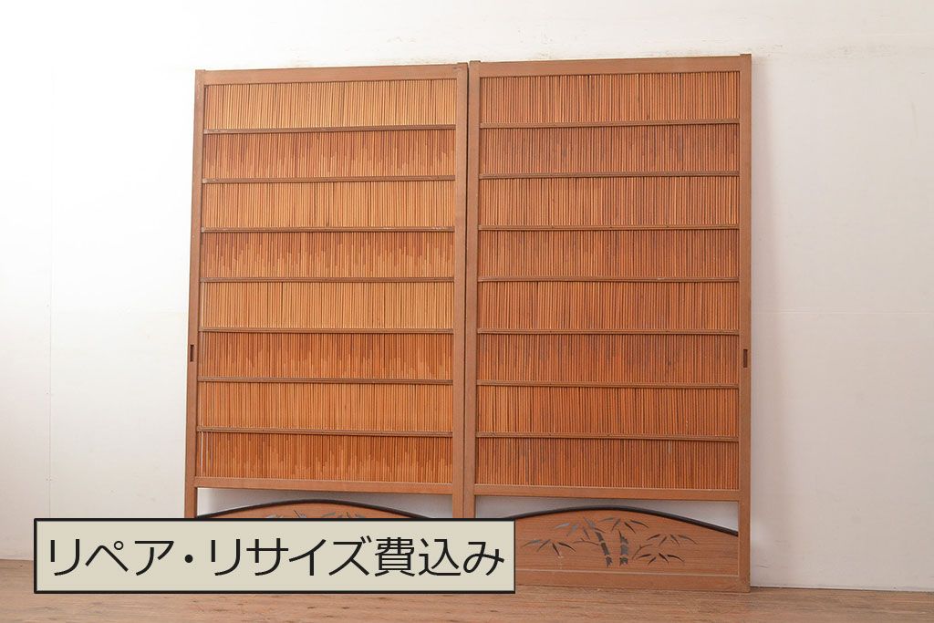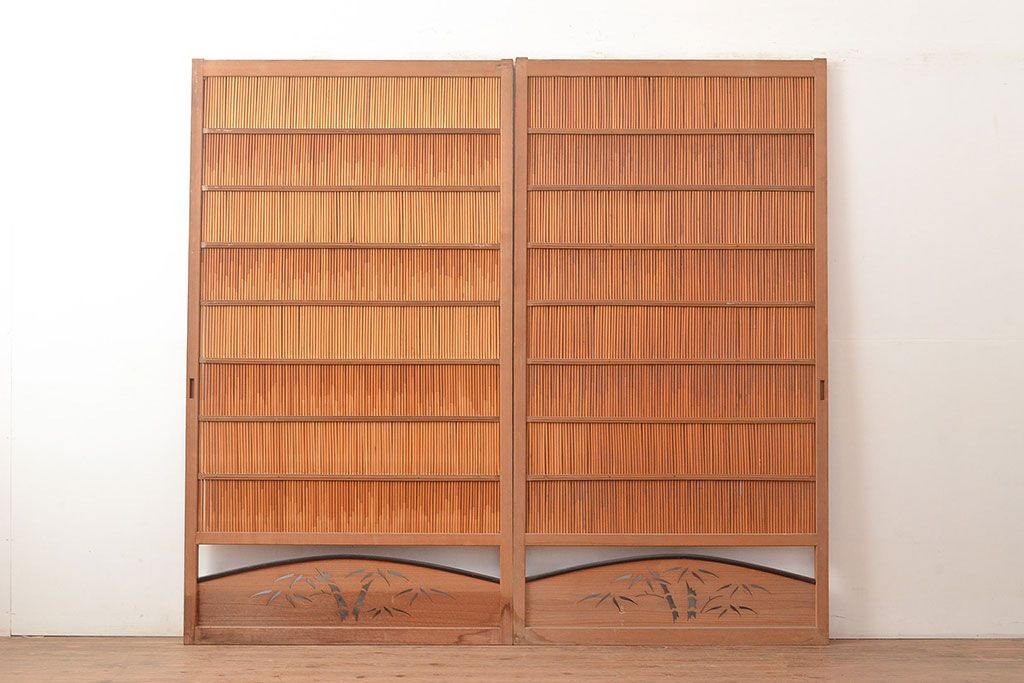 和製アンティーク 竹の透かしが和の雰囲気を高める御簾戸2枚セット(簾戸、簀戸、葭戸、夏障子、夏戸、すど、葦戸)(R-048312)
