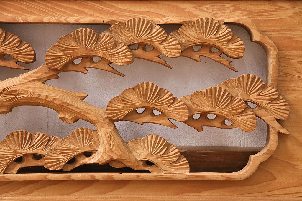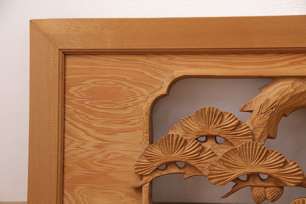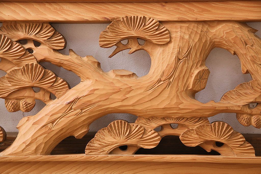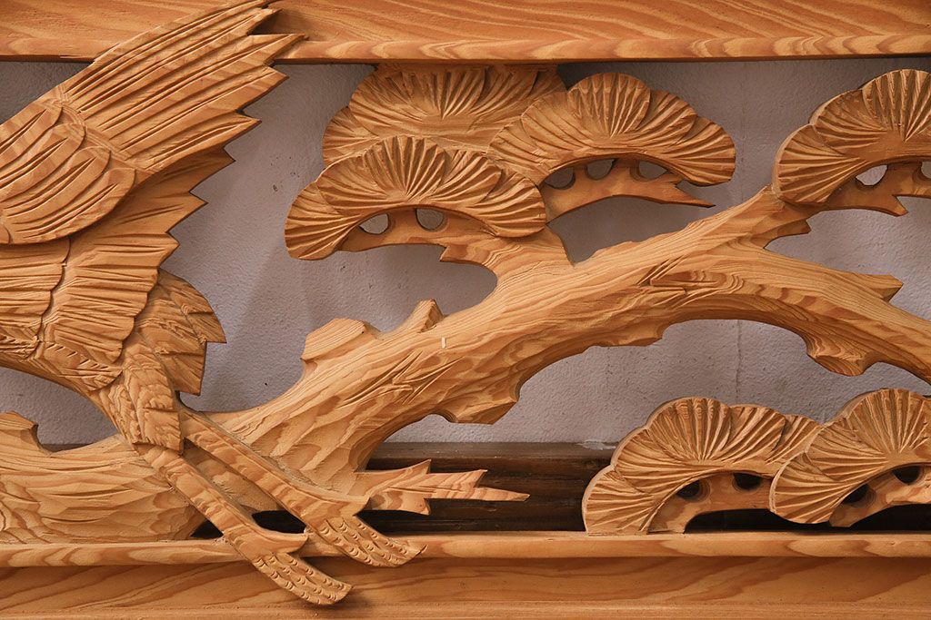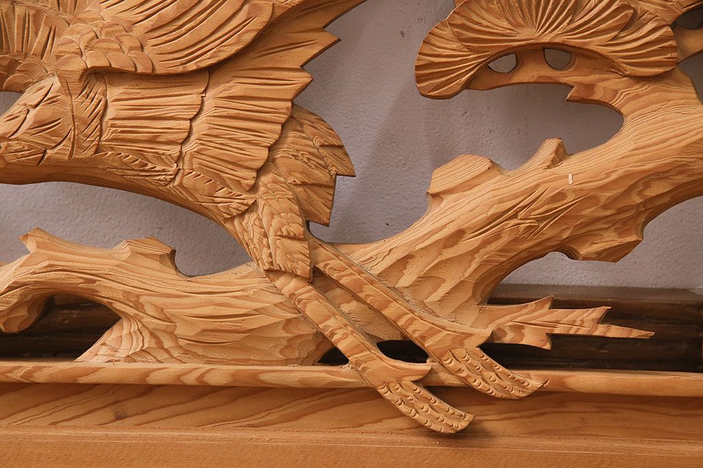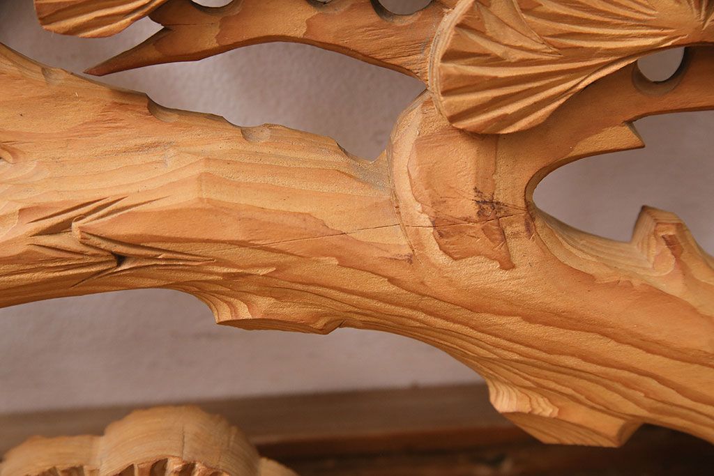ビンテージ建具 昭和後期 インテリアとしてもおすすめ!躍動感ある彫りが見事な欄間(彫刻欄間、明り取り、建具)(R-048836)