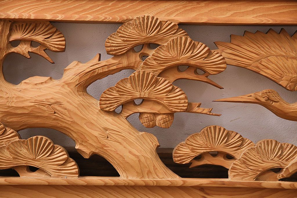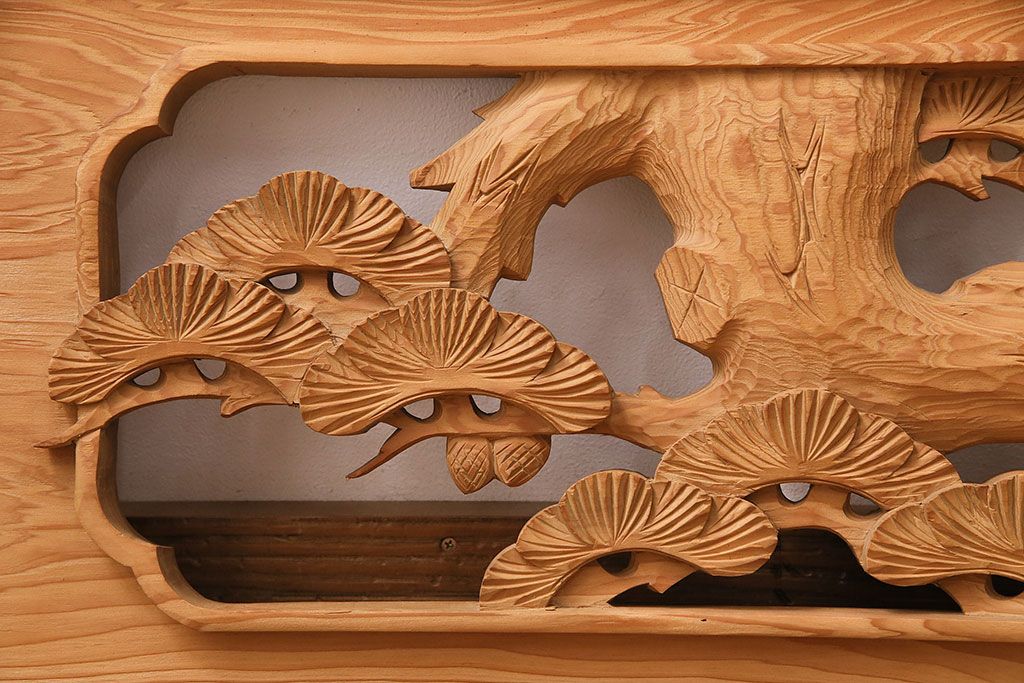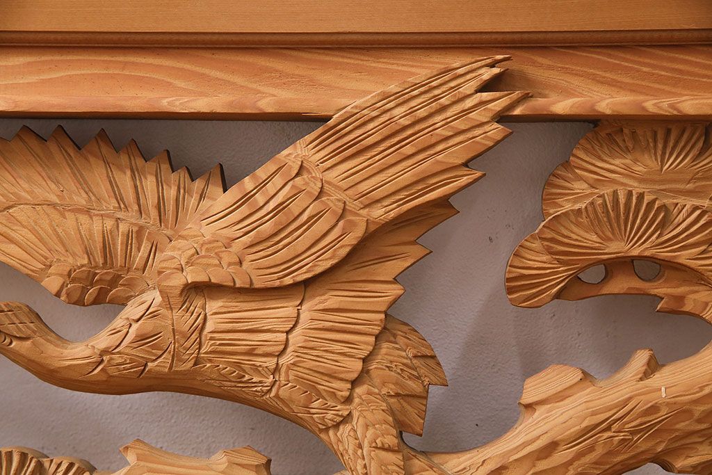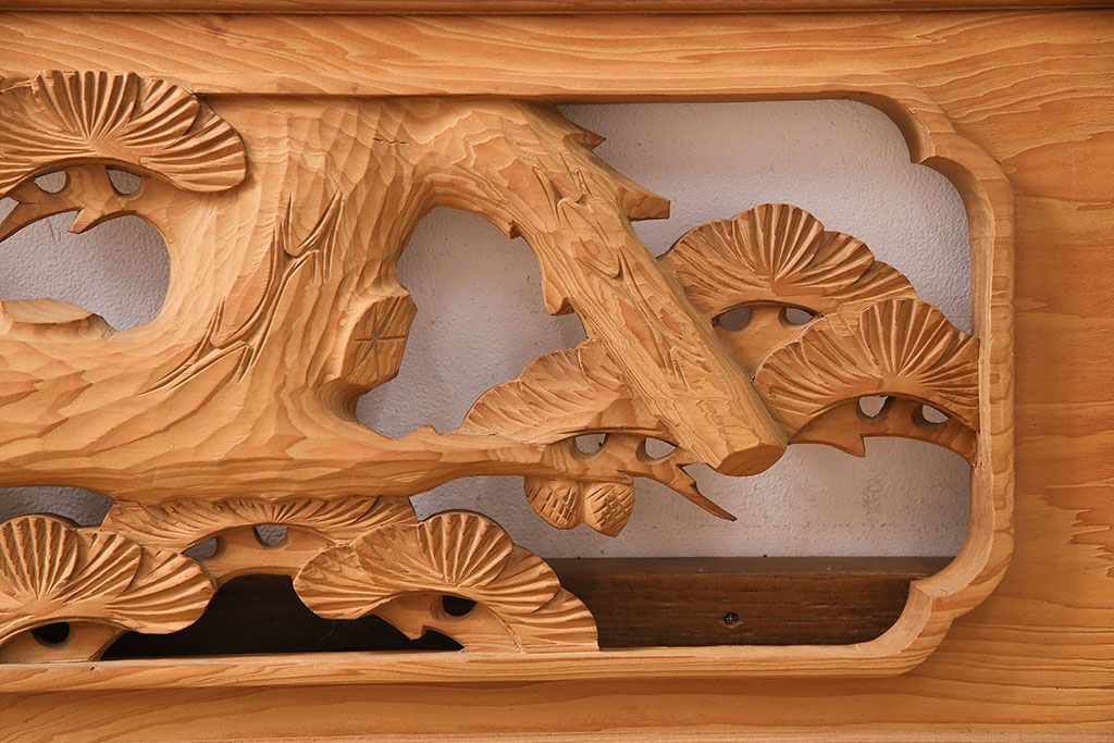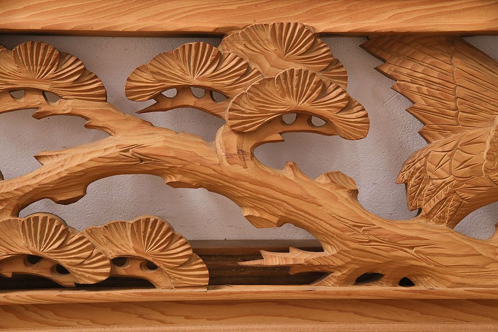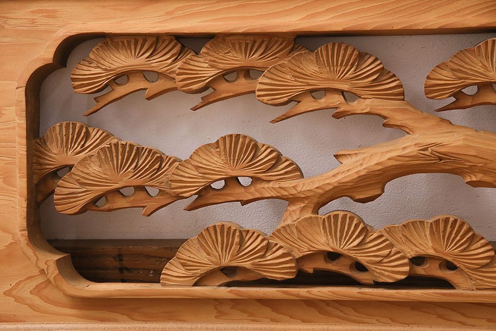 ビンテージ建具 昭和後期 インテリアとしてもおすすめ!躍動感ある彫りが見事な欄間(彫刻欄間、明り取り、建具)(R-048836)