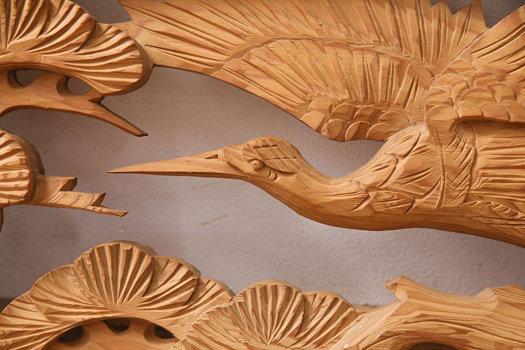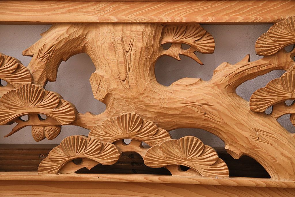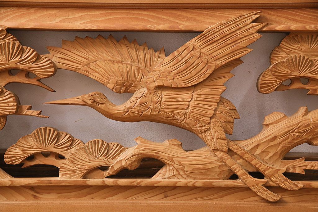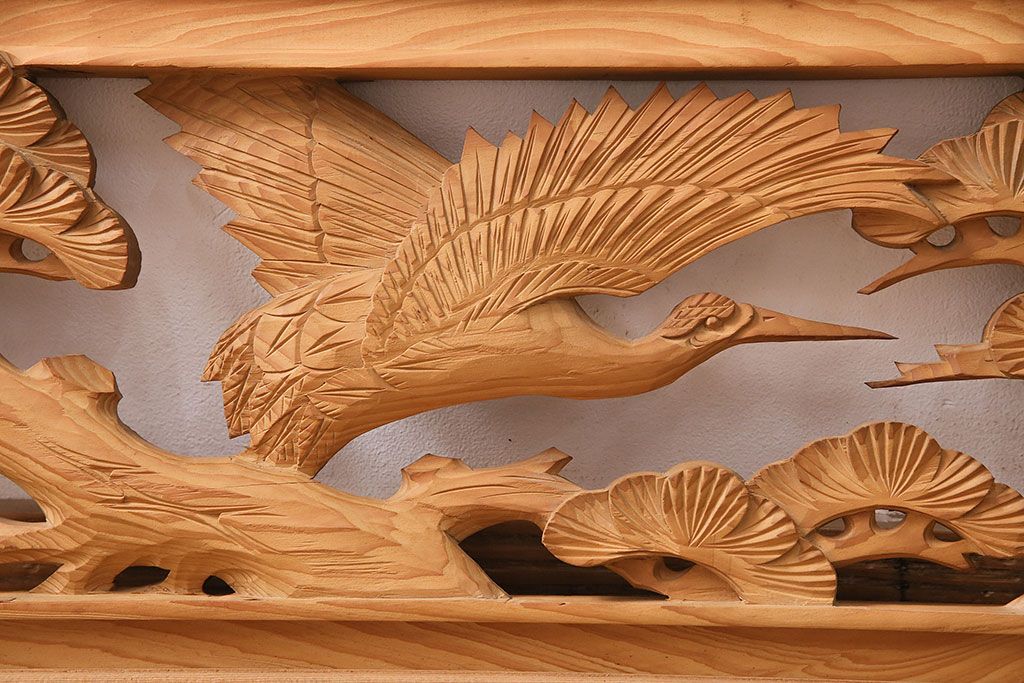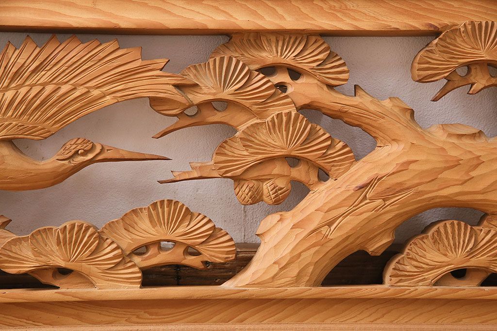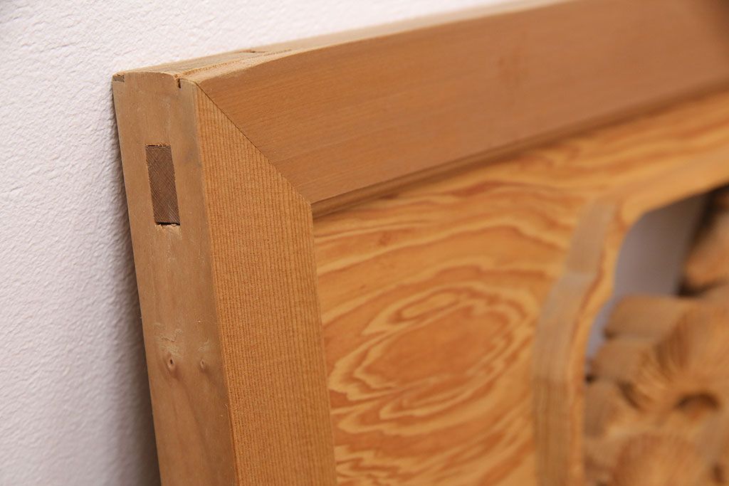 ビンテージ建具 昭和後期 インテリアとしてもおすすめ!躍動感ある彫りが見事な欄間(彫刻欄間、明り取り、建具)(R-048836)