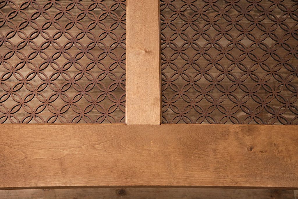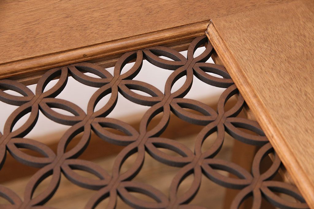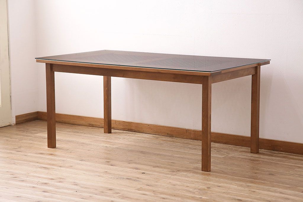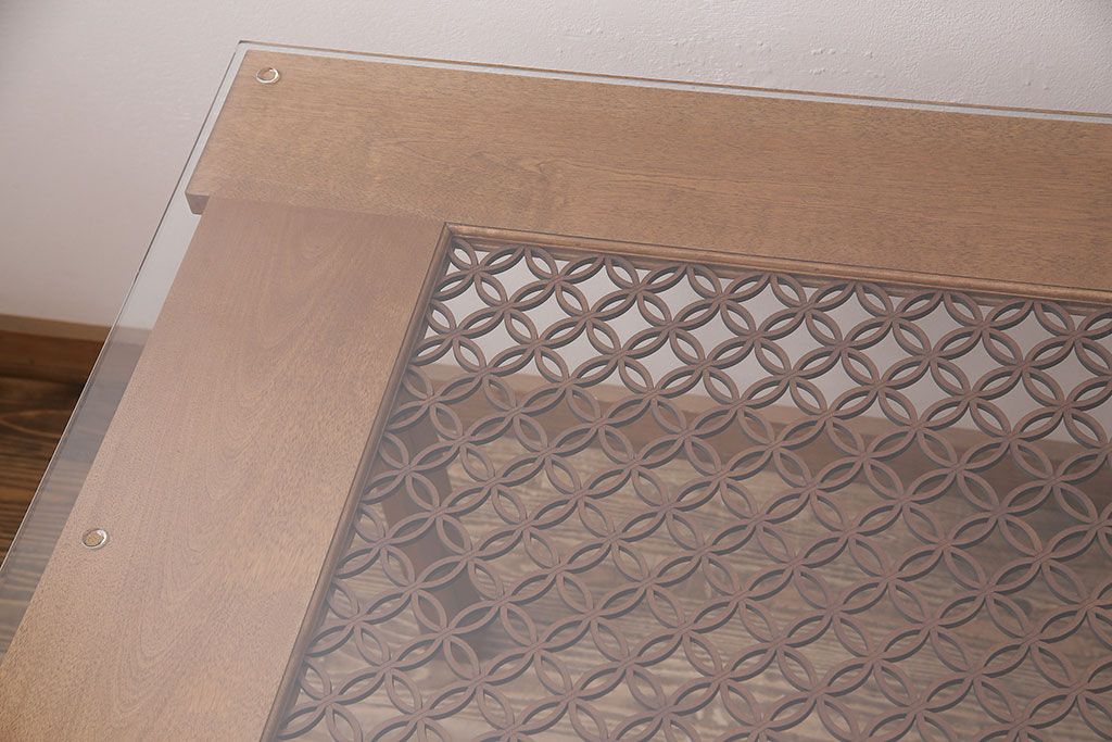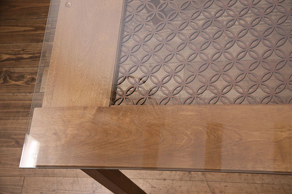 ラフジュ工房オリジナル ガラス天板付き 上品な和を演出する、七宝文様の組子が美しいダイニングテーブル(4人掛け)(R-048638)