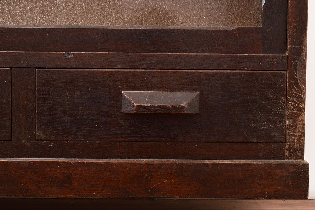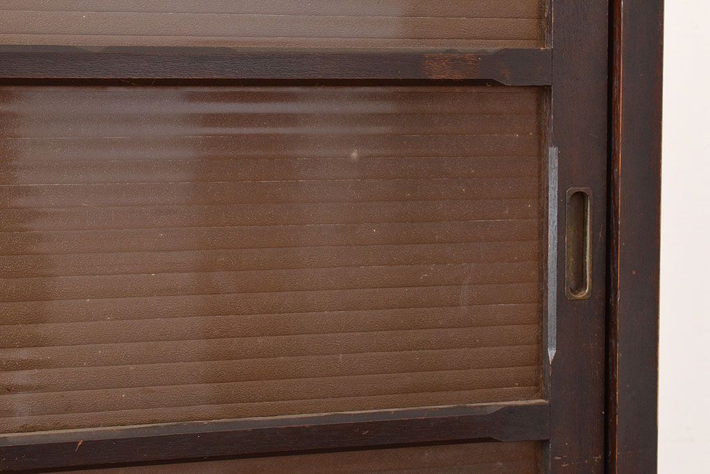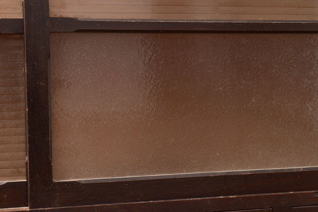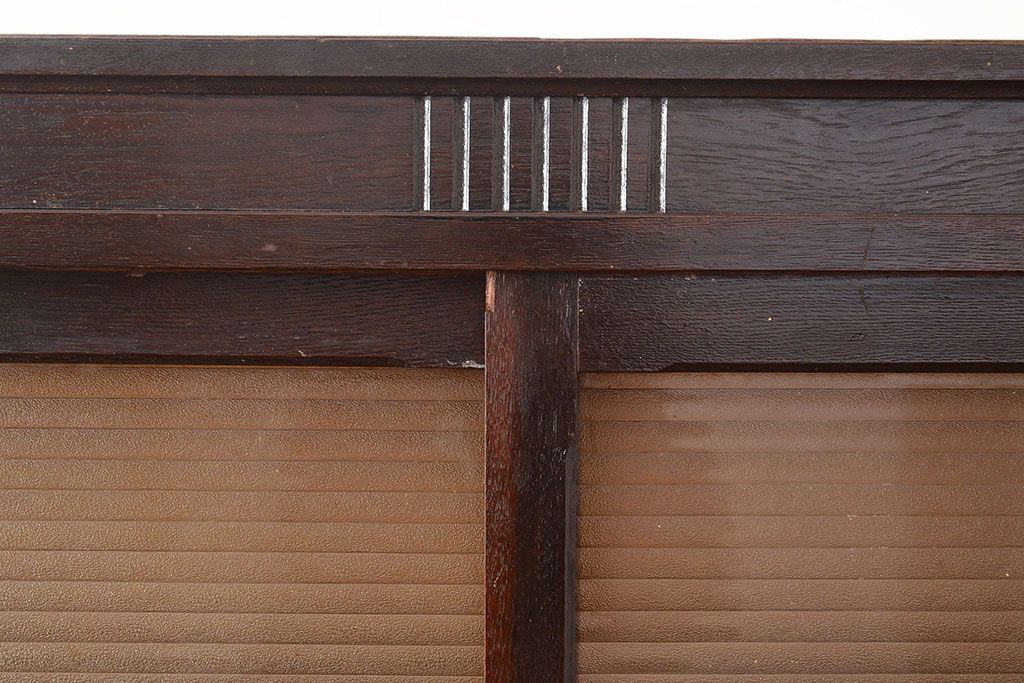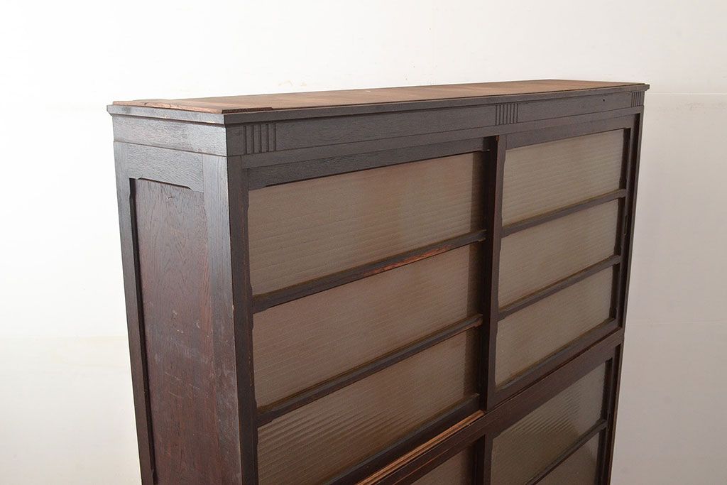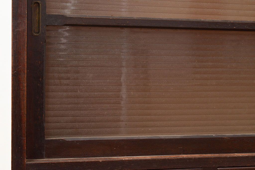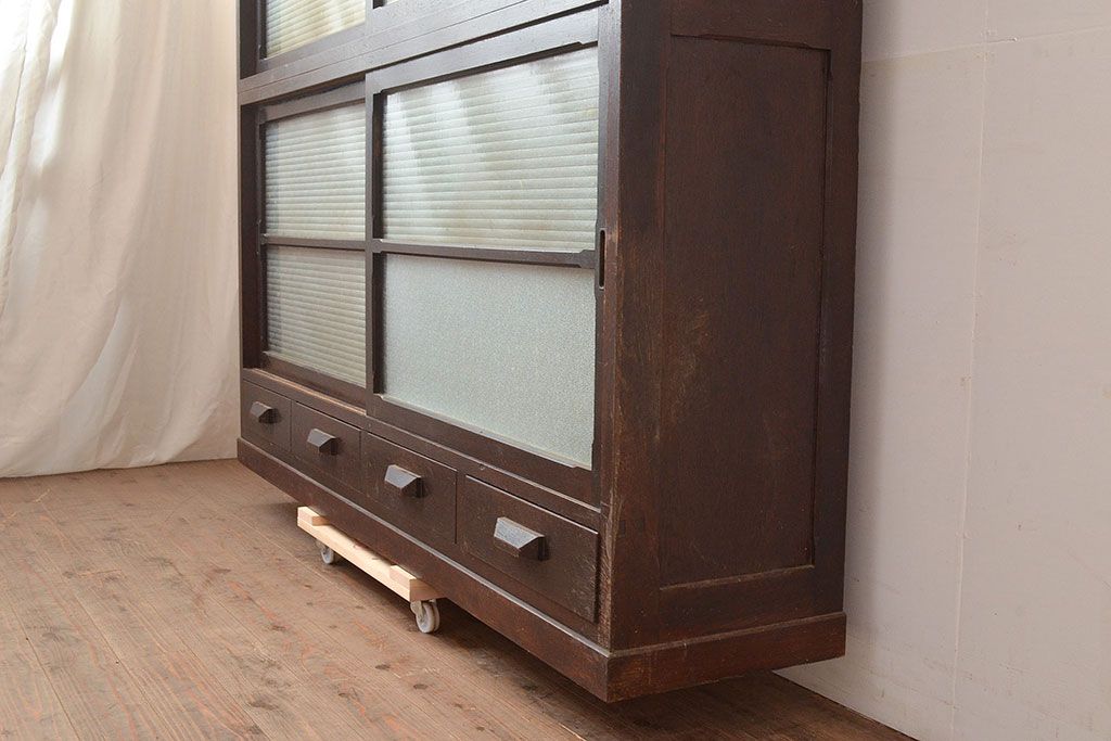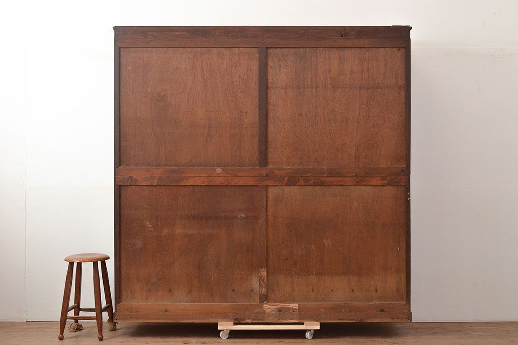 和製アンティーク 前面ナラ材 たっぷり収納できるのが嬉しい!銀モールガラス入り二段重ね戸棚(食器棚、収納棚、キャビネット、ガラス戸棚)(R-047953)
