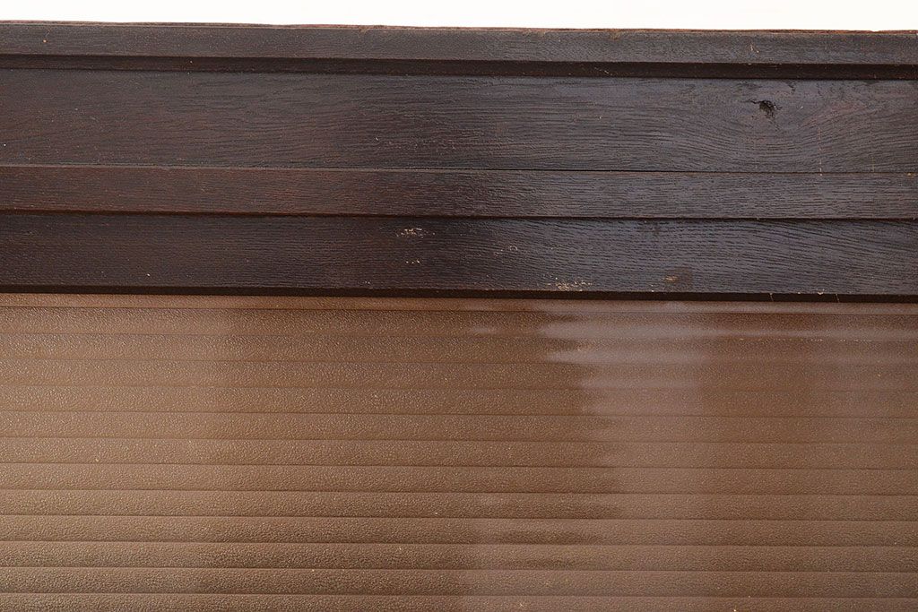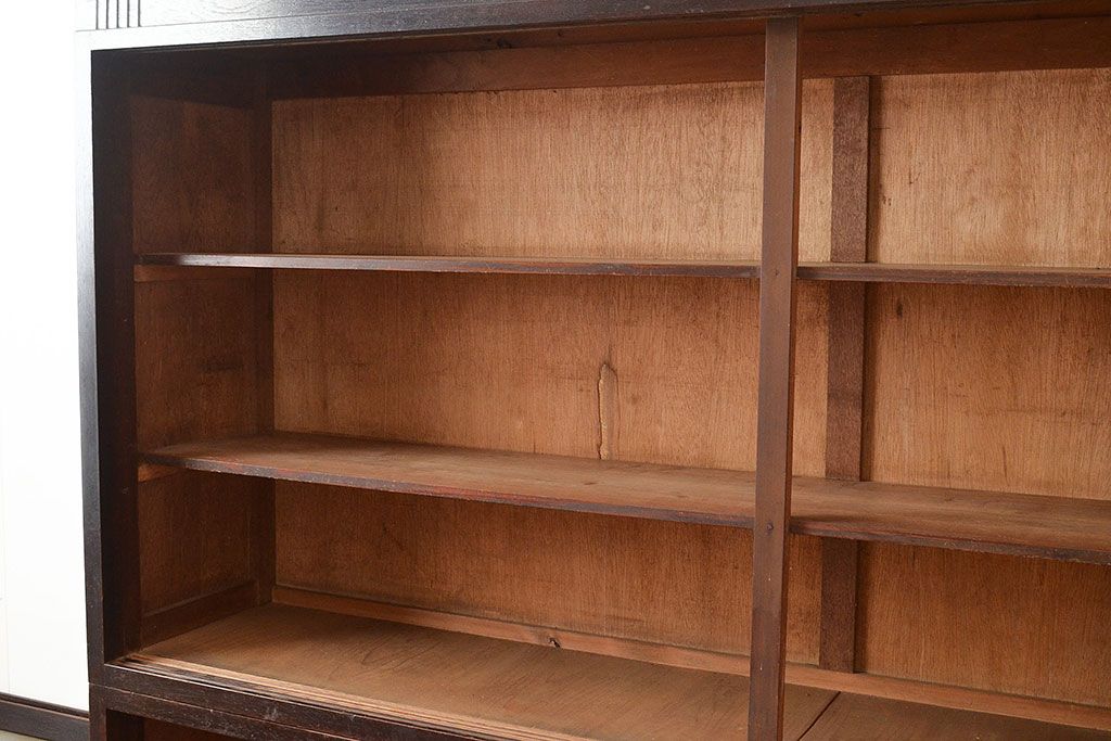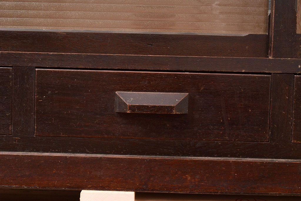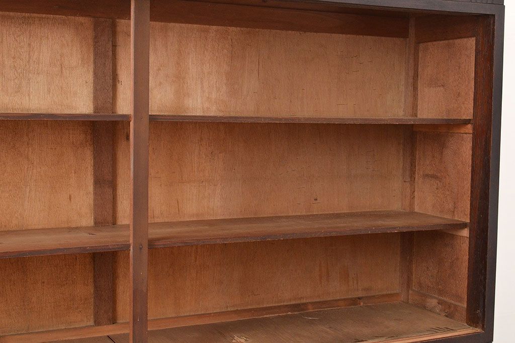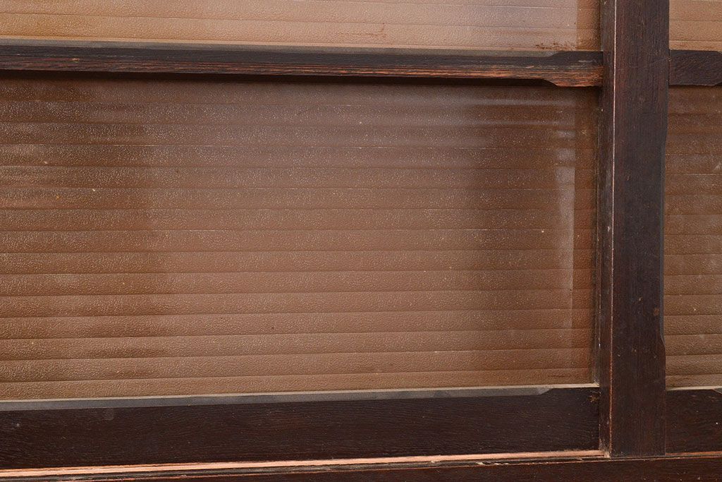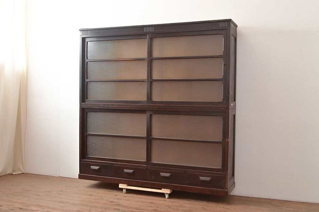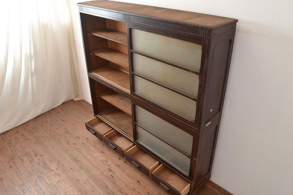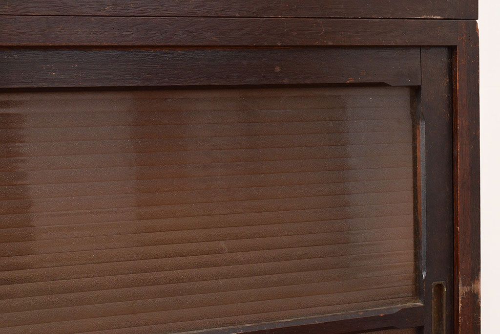 和製アンティーク 前面ナラ材 たっぷり収納できるのが嬉しい!銀モールガラス入り二段重ね戸棚(食器棚、収納棚、キャビネット、ガラス戸棚)(R-047953)