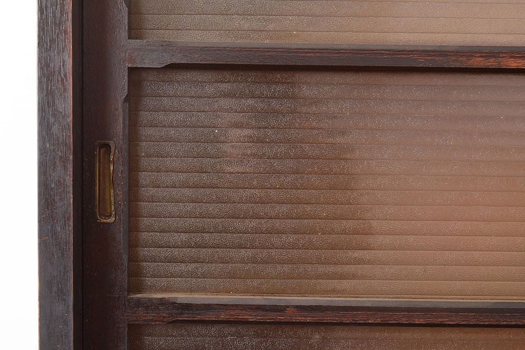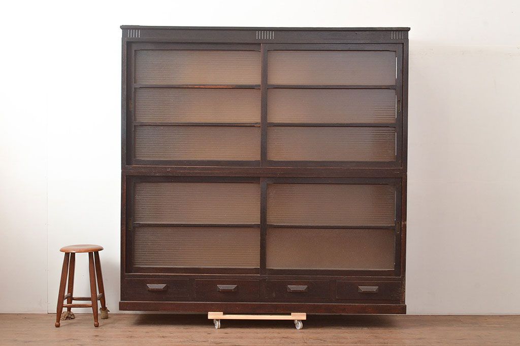 和製アンティーク 前面ナラ材 たっぷり収納できるのが嬉しい!銀モールガラス入り二段重ね戸棚(食器棚、収納棚、キャビネット、ガラス戸棚)(R-047953)です。