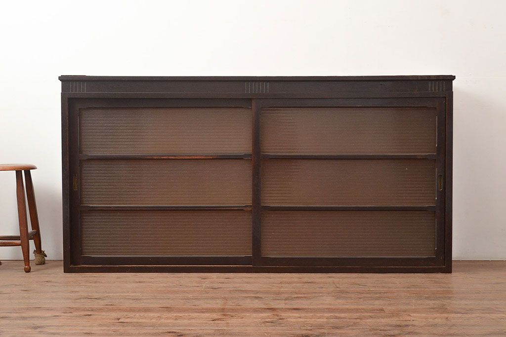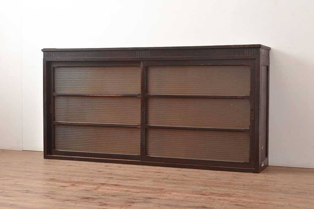 和製アンティーク ナラ材製 たっぷり収納できるのが嬉しい銀モールガラス入り戸棚(食器棚、収納棚、キャビネット、ガラス戸棚)(R-047954)です。