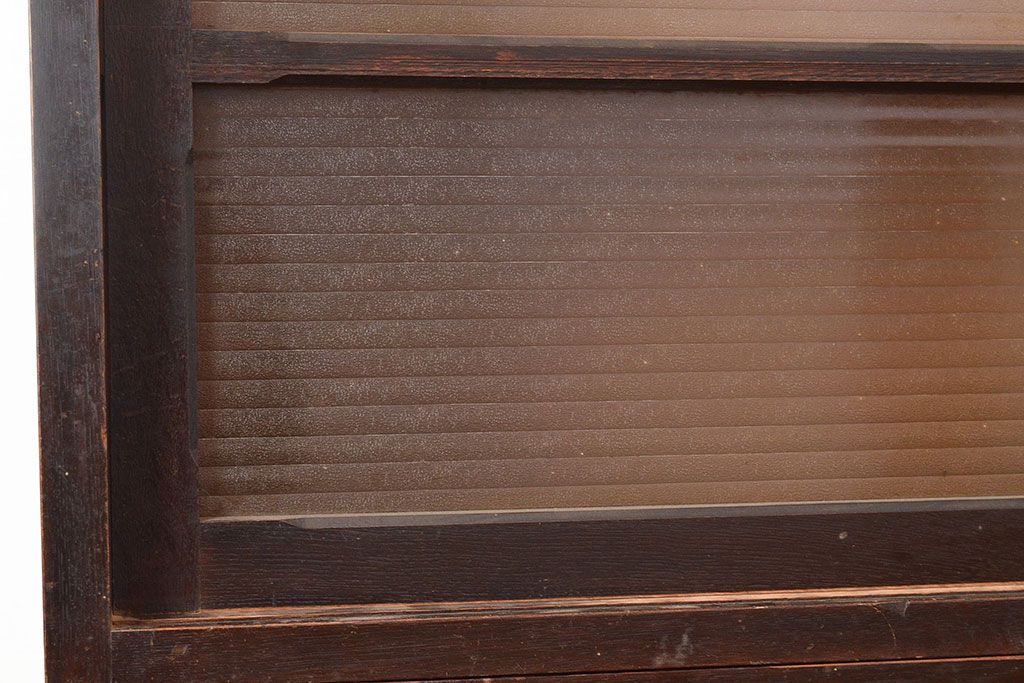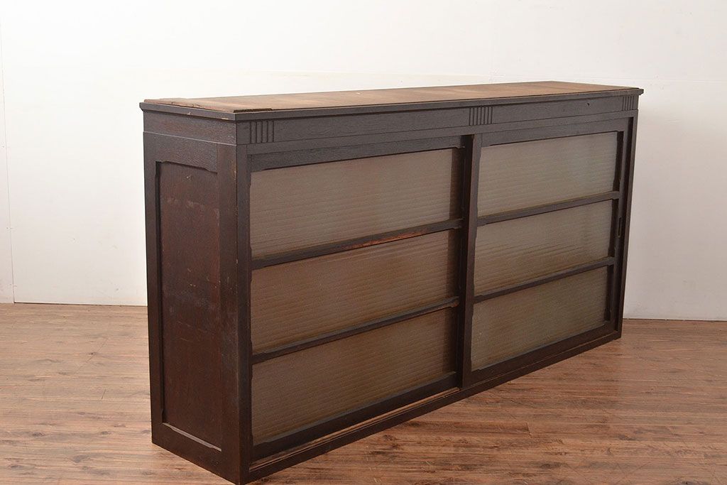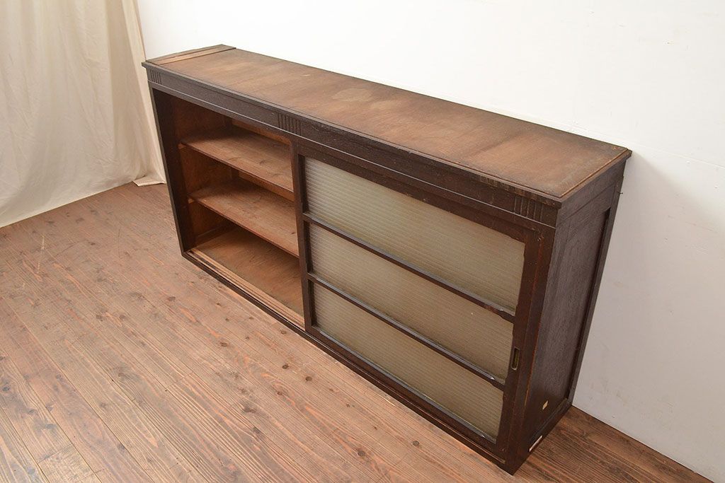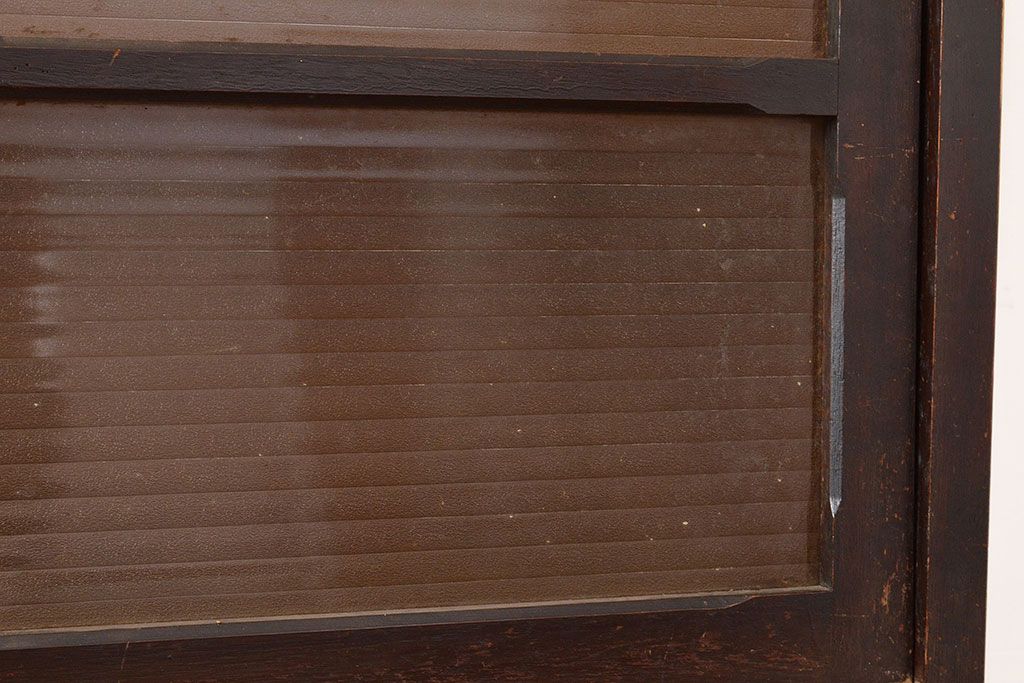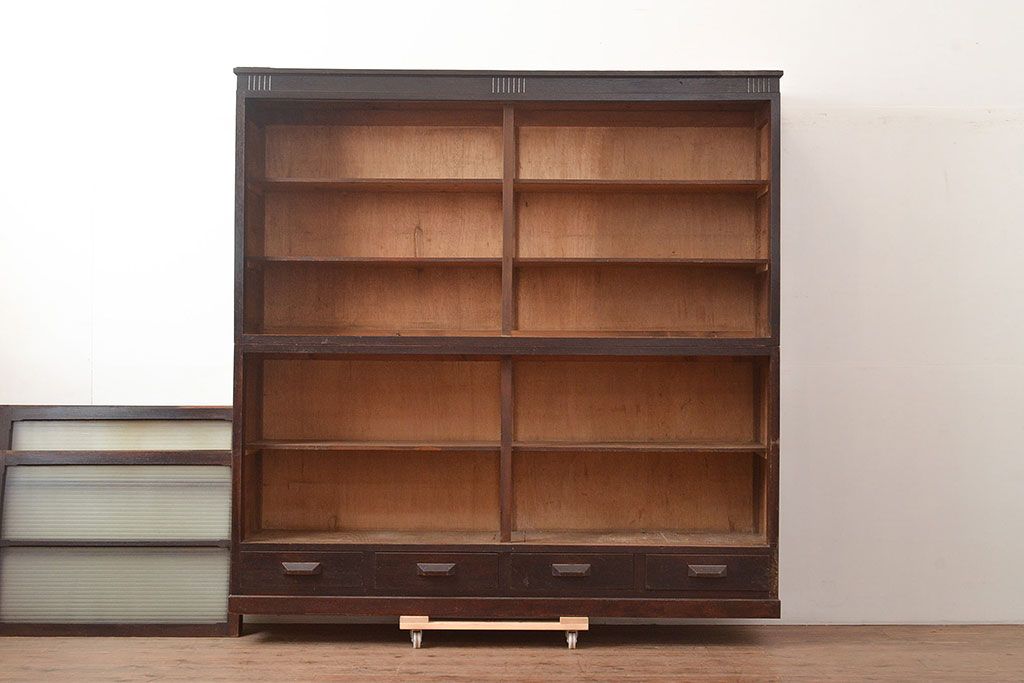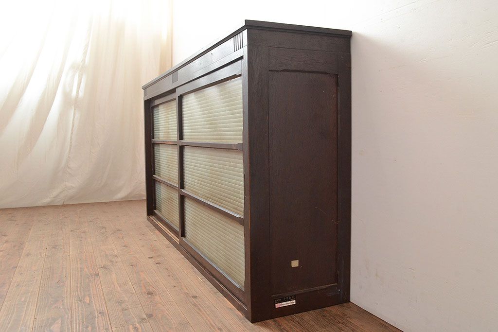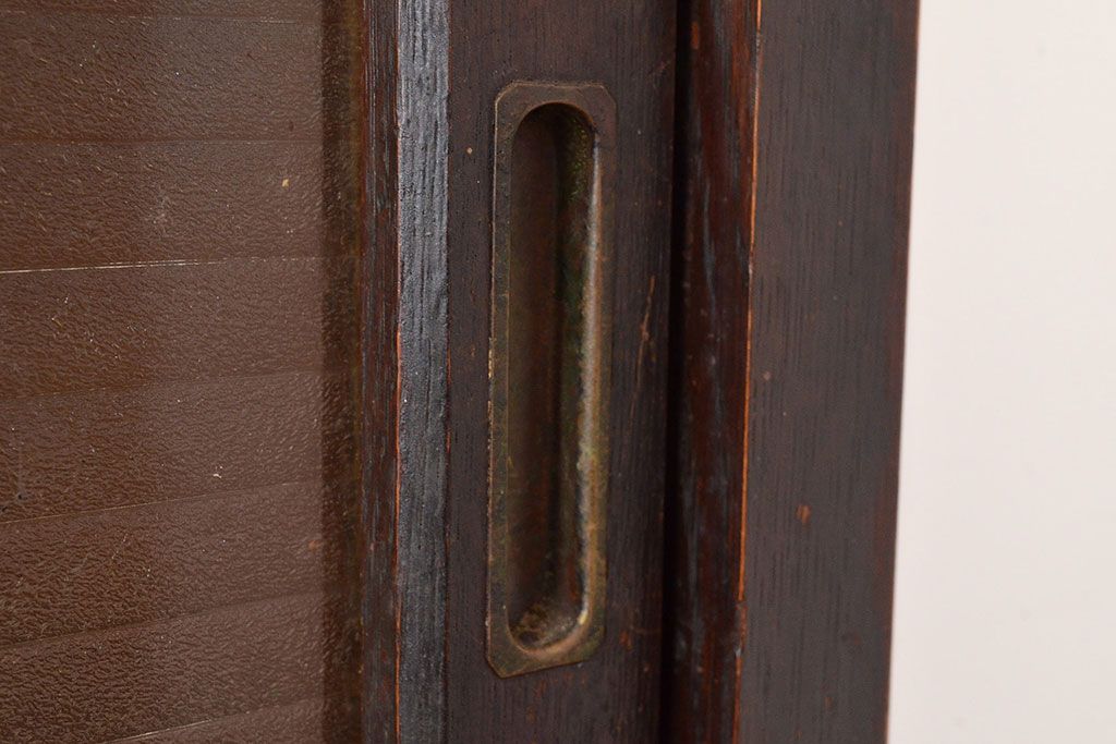 和製アンティーク ナラ材製 たっぷり収納できるのが嬉しい銀モールガラス入り戸棚(食器棚、収納棚、キャビネット、ガラス戸棚)(R-047954)