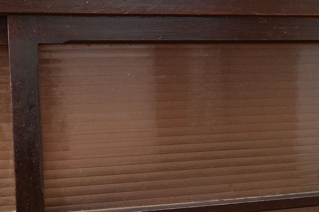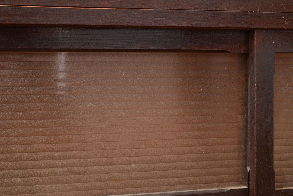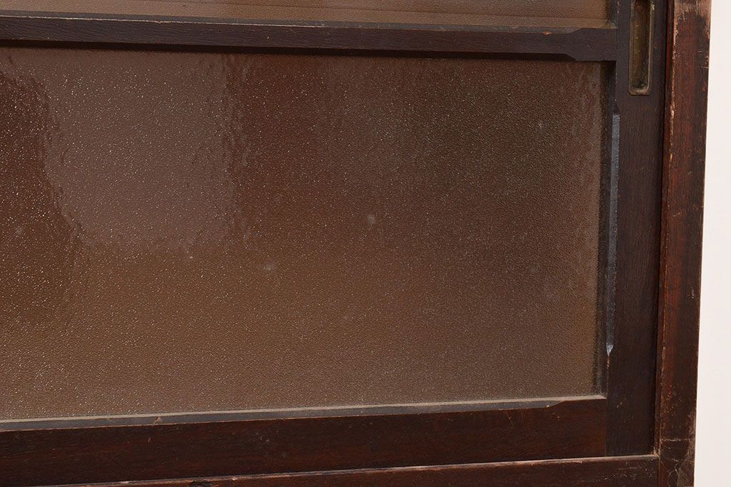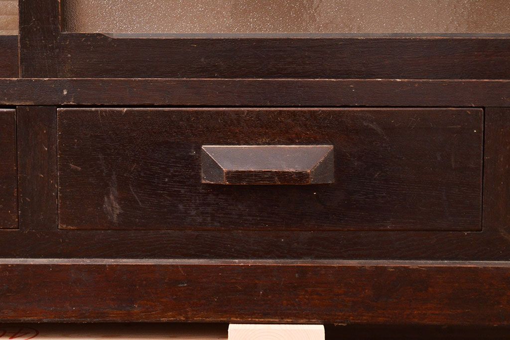 キャビネット・戸棚> サイドボード > 【簡易リペア限定品】和製アンティーク ナラ材製 たっぷり収納できるのが嬉しい銀モールガラス入り戸棚(食器棚、収納棚、キャビネット、ガラス戸棚、サイドボード)(R-047955)