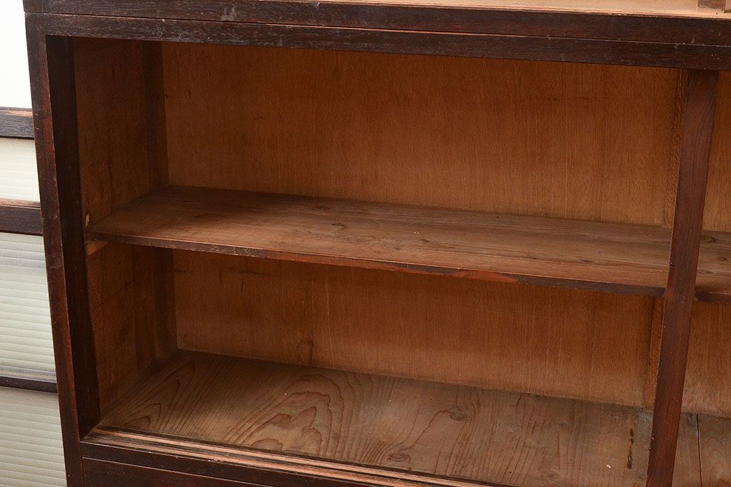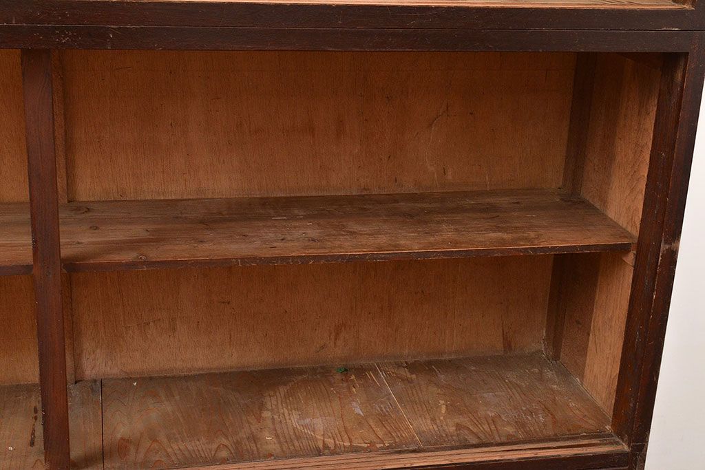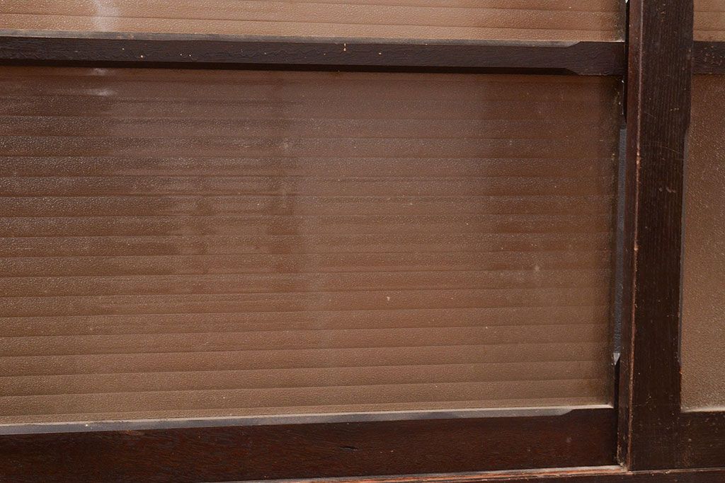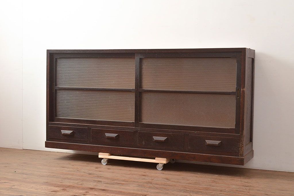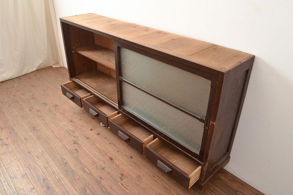 キャビネット・戸棚> サイドボード > 【簡易リペア限定品】和製アンティーク ナラ材製 たっぷり収納できるのが嬉しい銀モールガラス入り戸棚(食器棚、収納棚、キャビネット、ガラス戸棚、サイドボード)(R-047955)