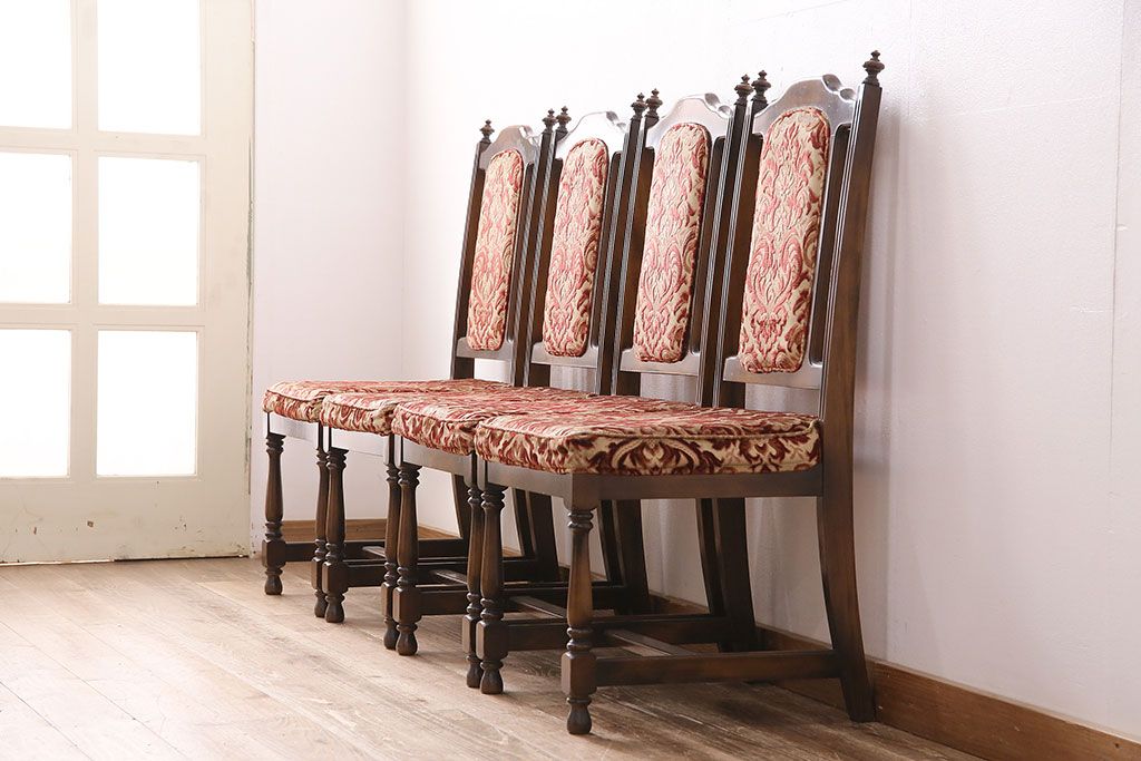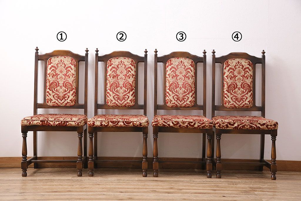 和製ビンテージ カリモク家具(karimoku) エレガントなデザインが格調高い雰囲気を醸し出すチェア4脚セット(ダイニングチェア、椅子)(R-048428)