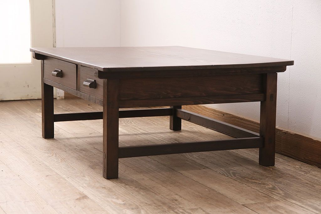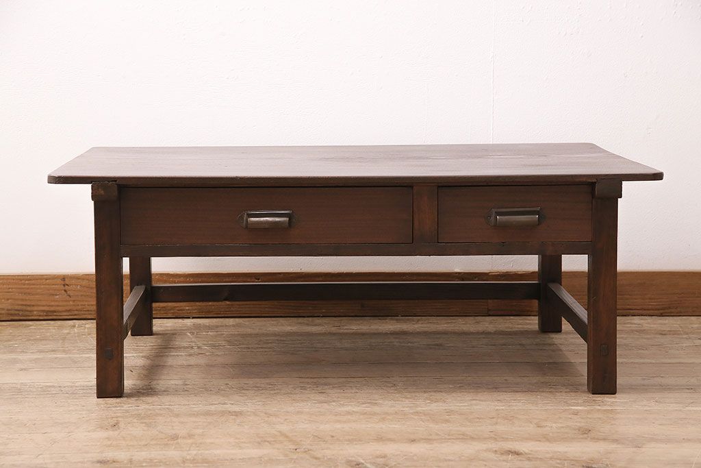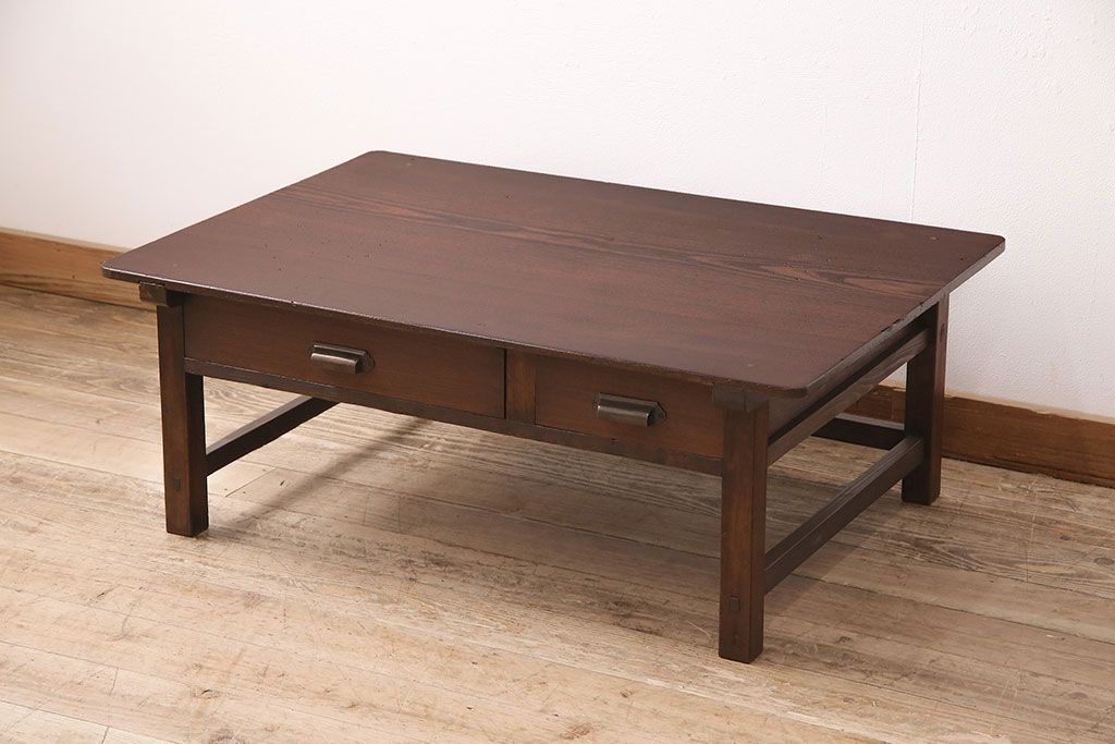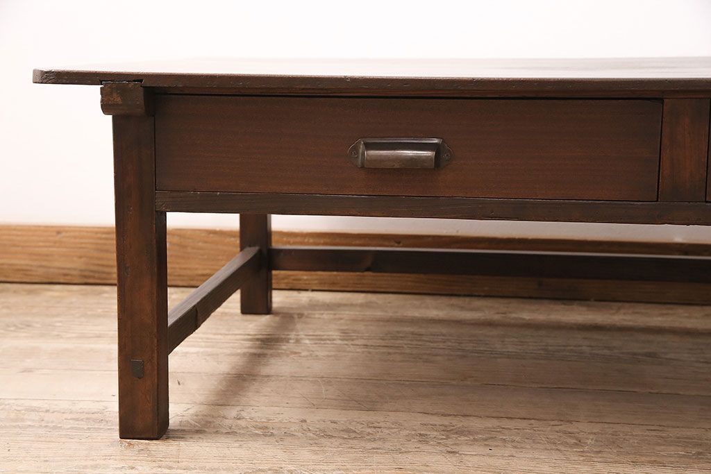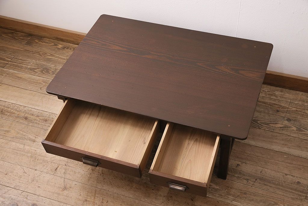和製アンティーク ノスタルジックな雰囲気を醸し出すヒノキ材製文机(座卓、座机、ローテーブル、センターテーブル)(R-048865)です。