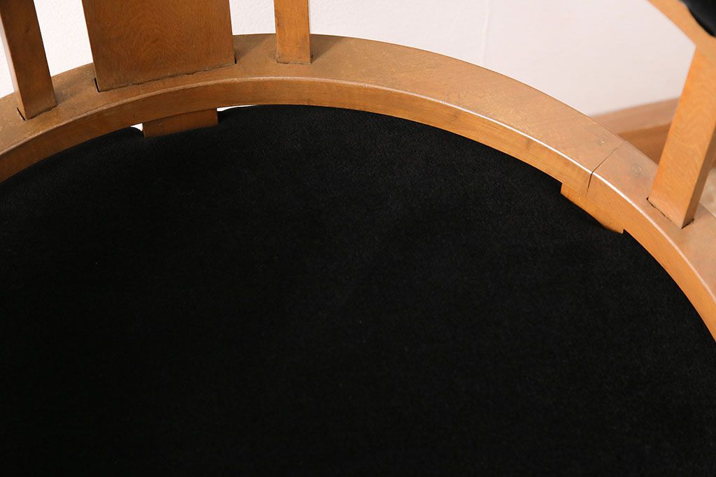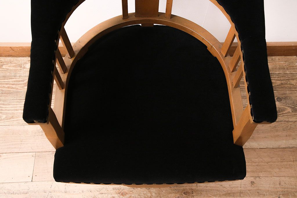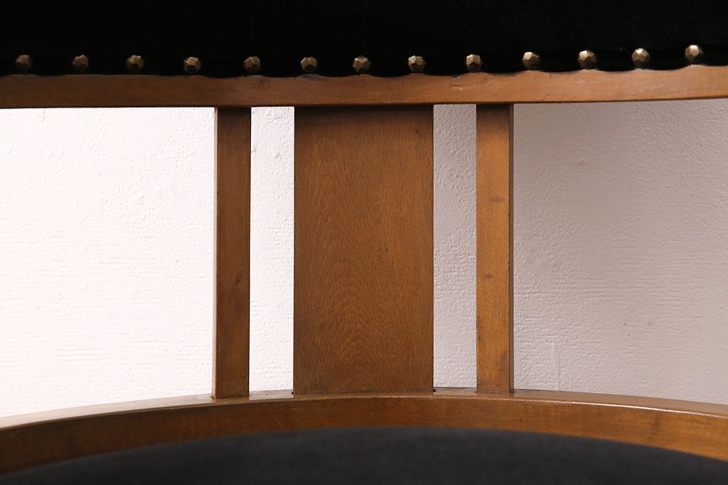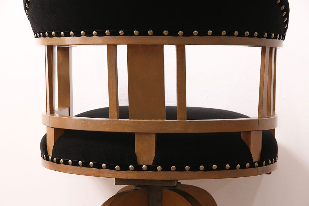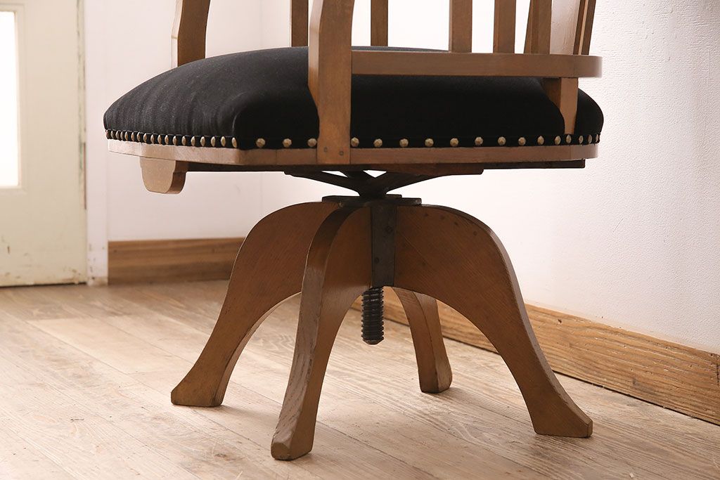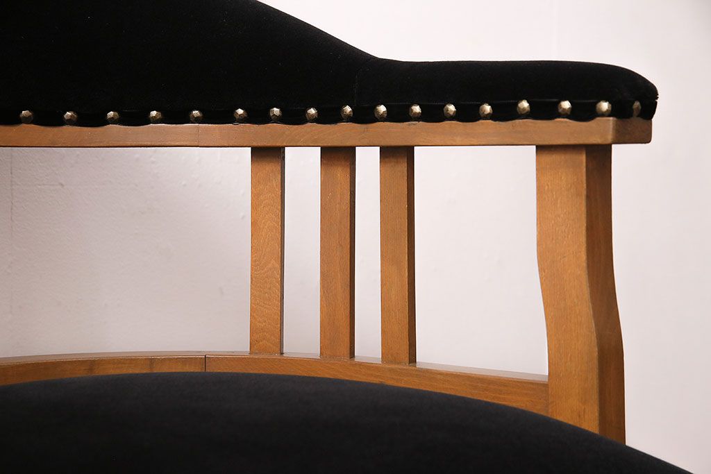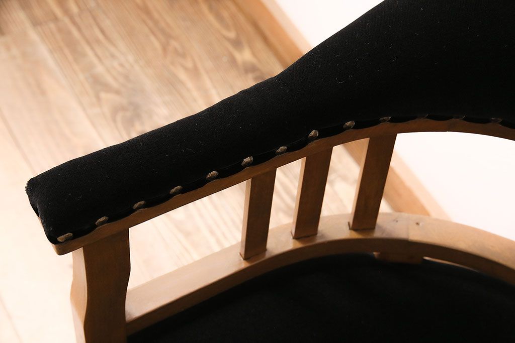 椅子・ベンチ> アームチェア > 和製アンティーク 黒いファブリックに鋲が打たれた、メンズライクなデザインが格好いい回転チェア(回転椅子、ドクターチェア、椅子)(R-037043)
