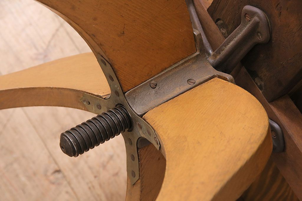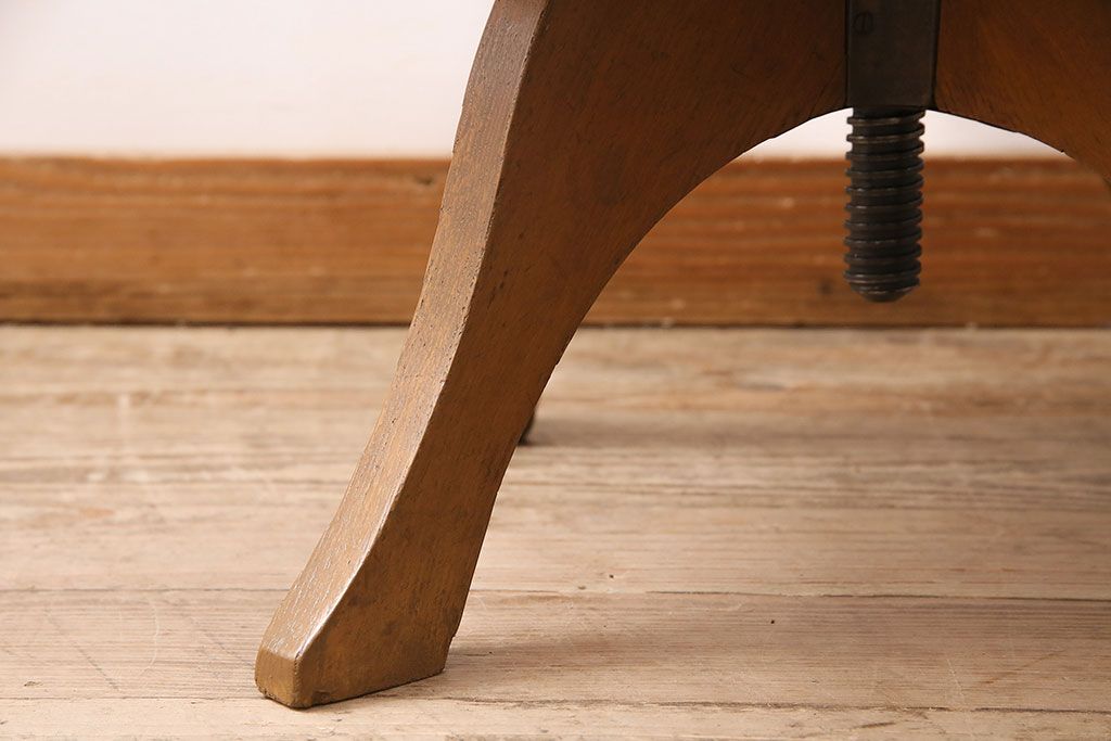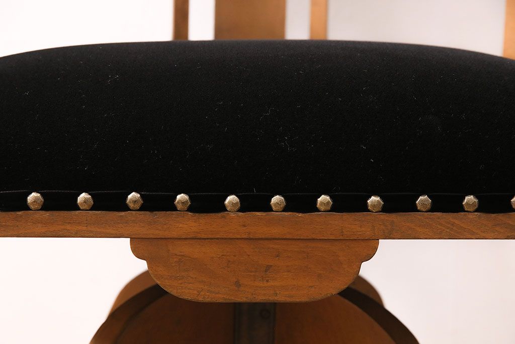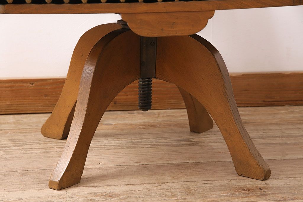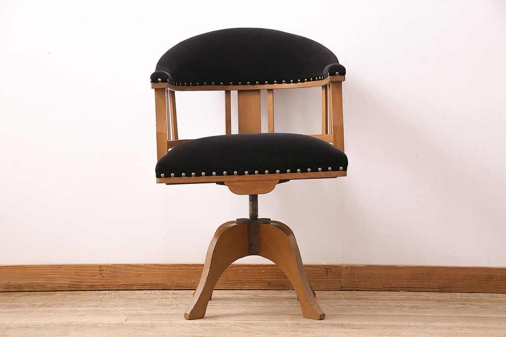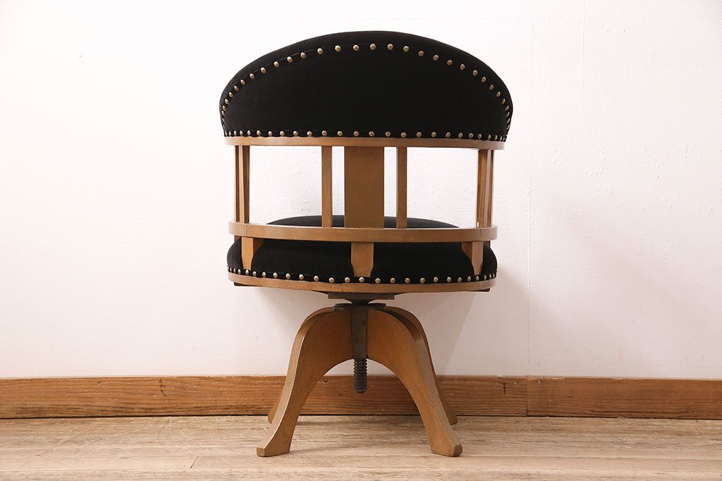 椅子・ベンチ> 回転椅子 > 和製アンティーク 黒いファブリックに鋲が打たれた、メンズライクなデザインが格好いい回転チェア(回転椅子、ドクターチェア、椅子)(R-037043)