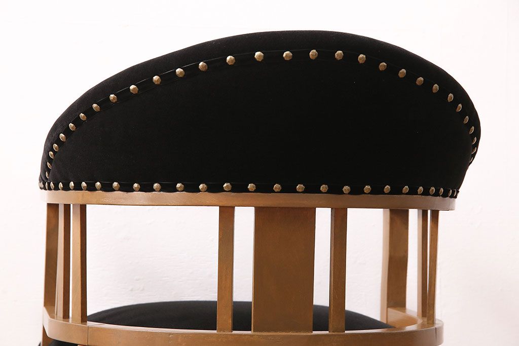 黒い座面に打たれたくすんだ風合いの鋲が印象的で、
