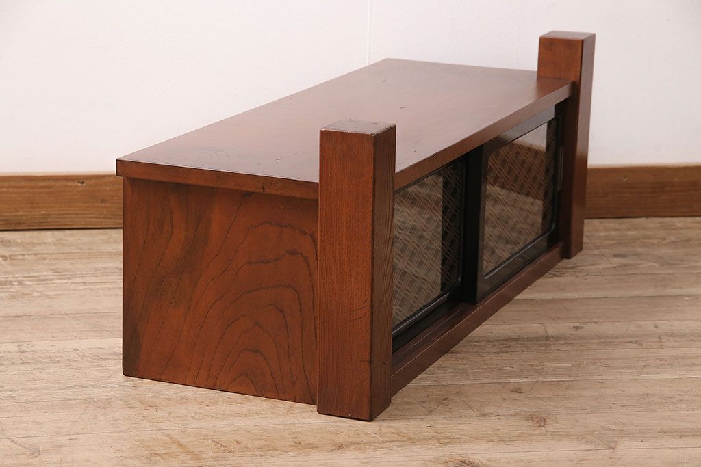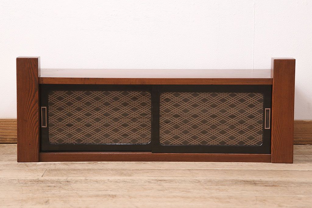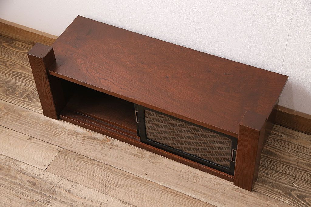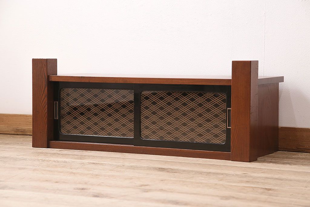 和製アンティーク ケヤキ材 漆塗り 三重菱の組子がお洒落なアクセントになった置き床(収納棚、ガラス戸棚、ローボード、飾り台、テレビ台)(R-048866)です。