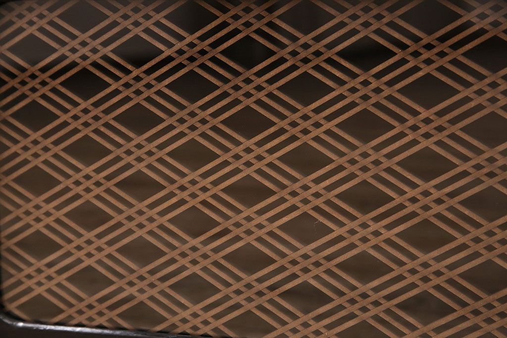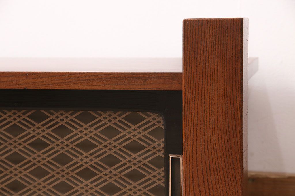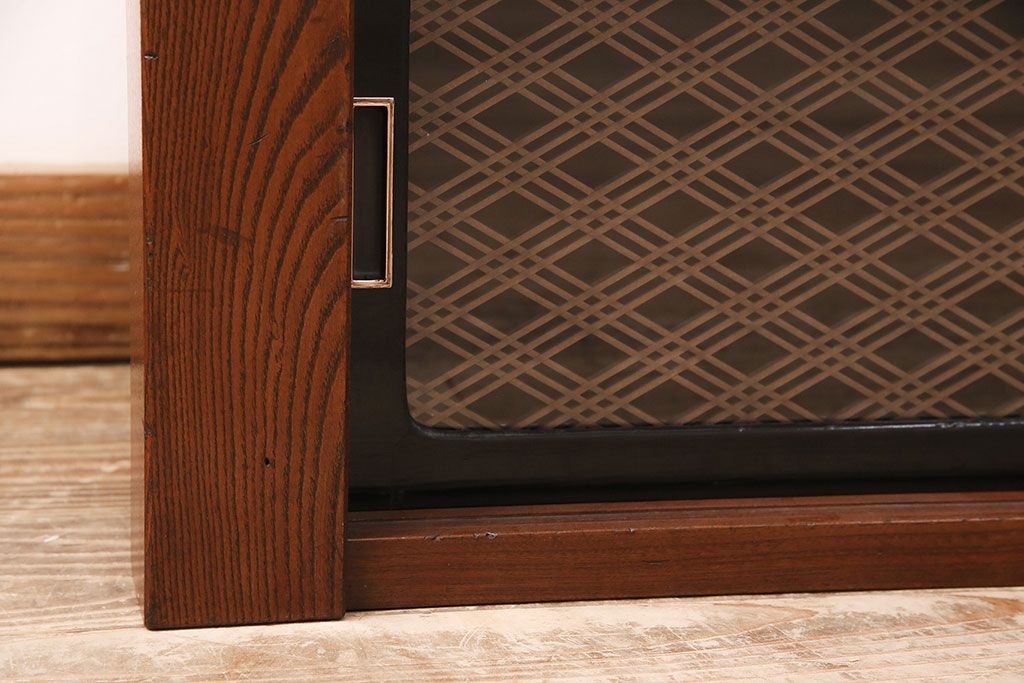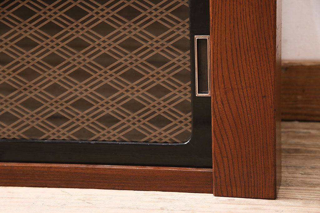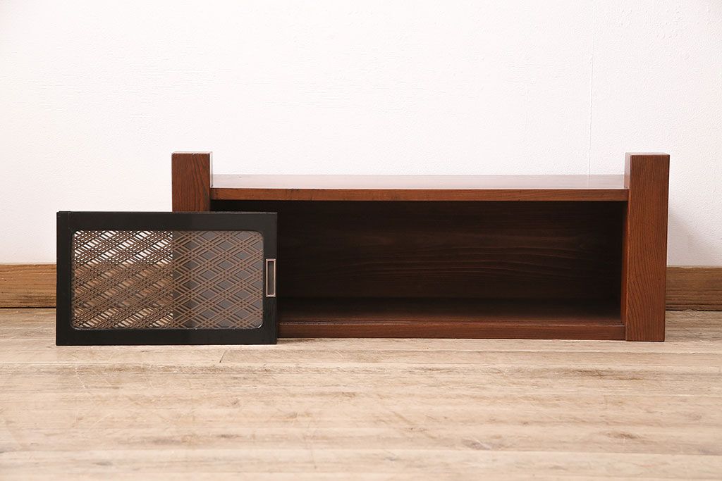 和製アンティーク ケヤキ材 漆塗り 三重菱の組子がお洒落なアクセントになった置き床(収納棚、ガラス戸棚、ローボード、飾り台、テレビ台)(R-048866)です。