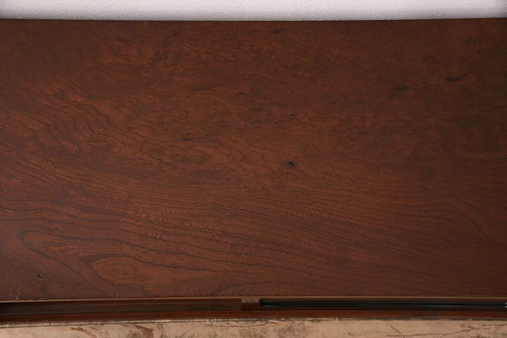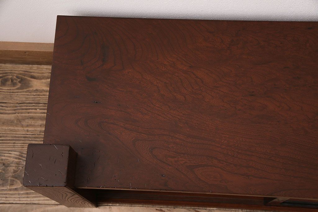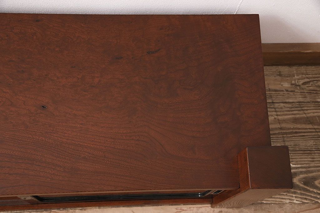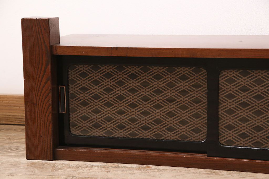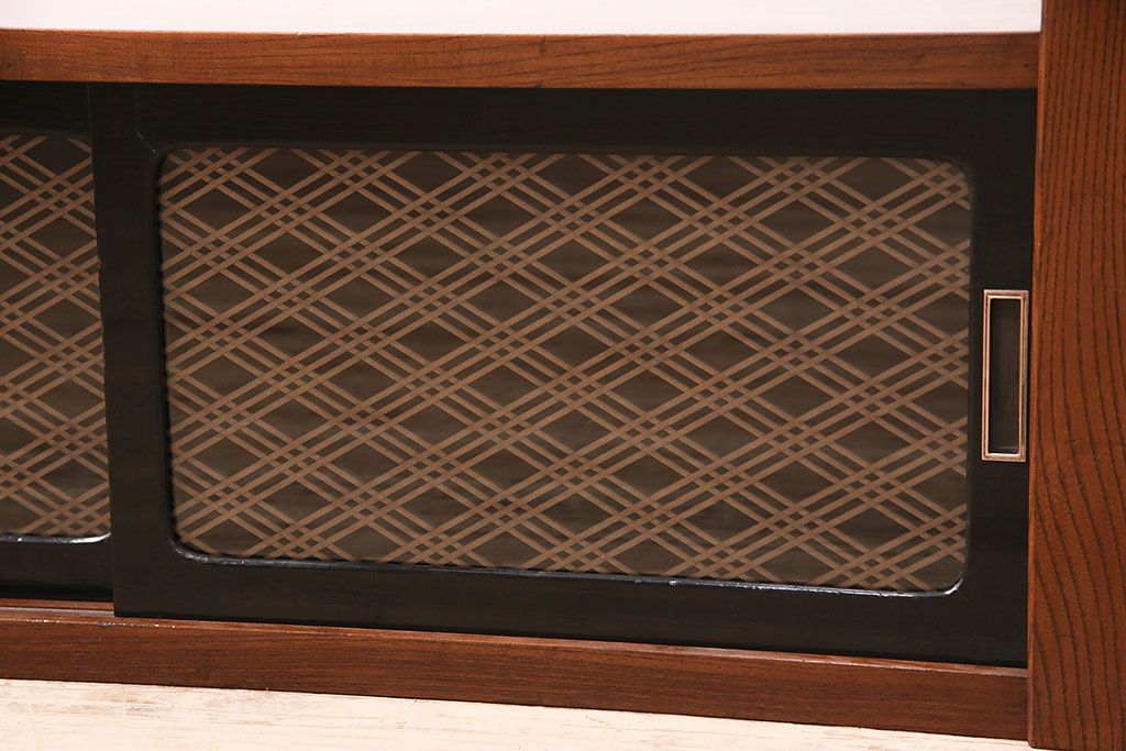 和製アンティーク ケヤキ材 漆塗り 三重菱の組子がお洒落なアクセントになった置き床(収納棚、ガラス戸棚、ローボード、飾り台、テレビ台)(R-048866)