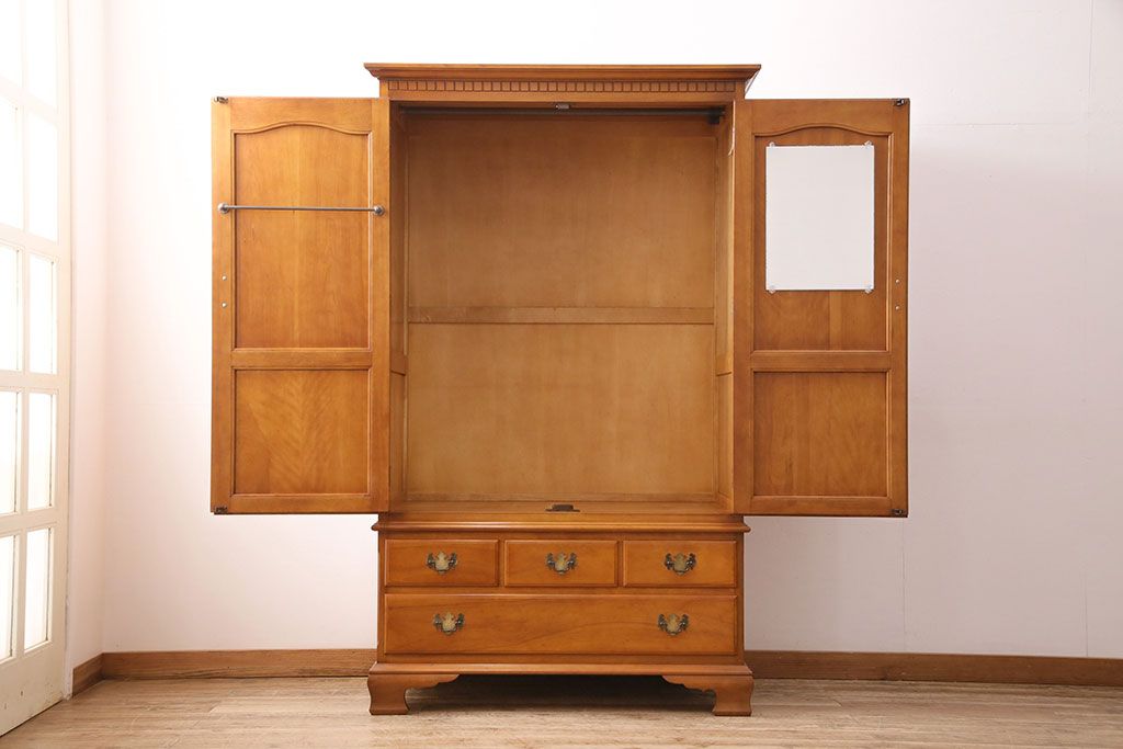 中古 横浜ダニエル(daniel) アーリーアメリカン エレガントな気品と木の温かみを感じるワードローブ(洋服タンス)(定価約100万円)(R-048887)
