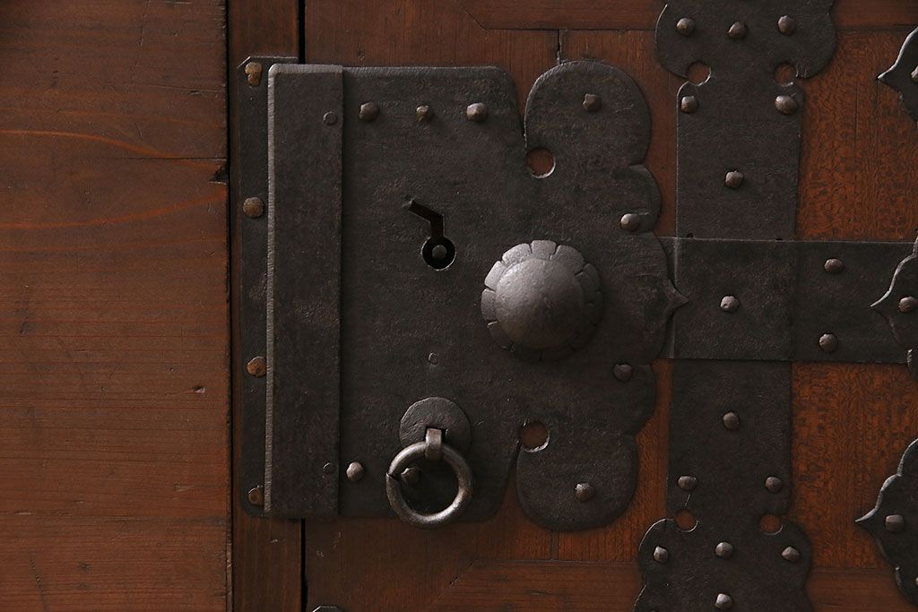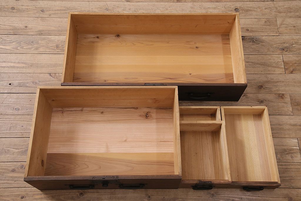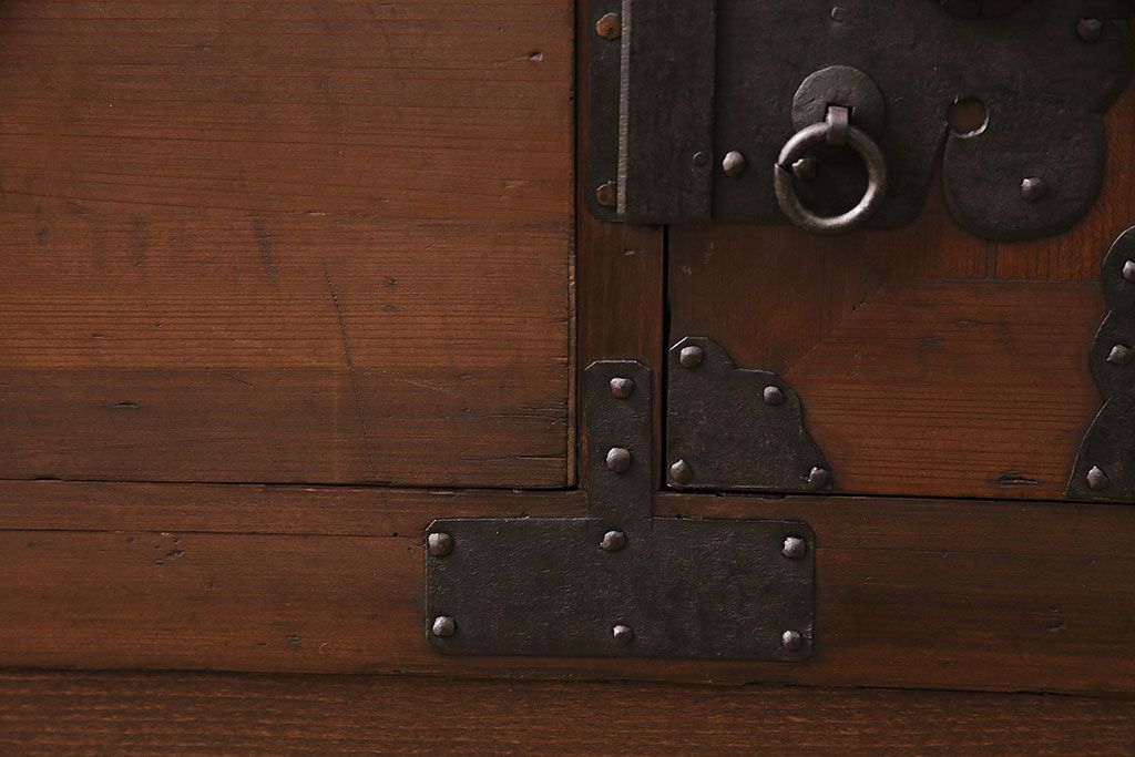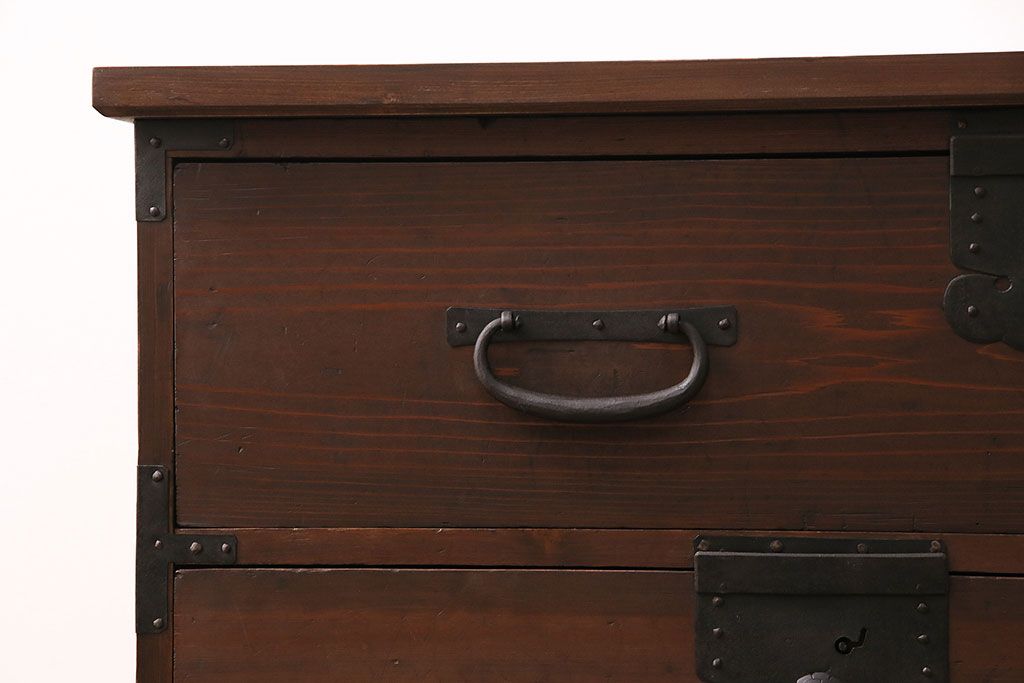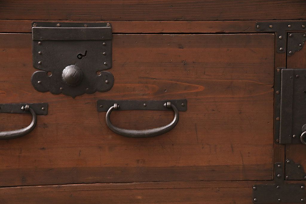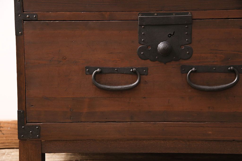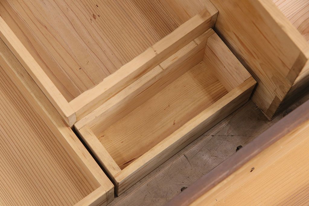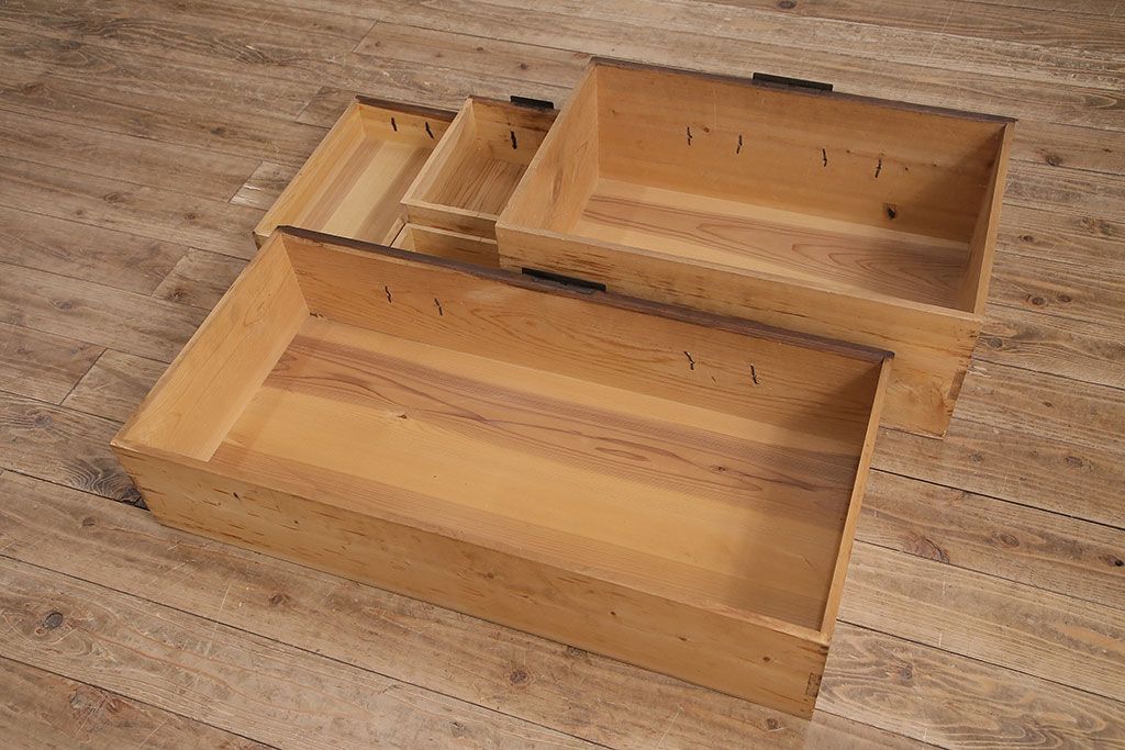 ラフジュ工房> キャビネット・戸棚> テレビ台・ローボード > 和製アンティーク ヒノキ材 天板・脚付きリメイク 経年による風合いが味わい深いローボード(テレビボード、テレビ台、引き出し、リビングボード)(R-048861)