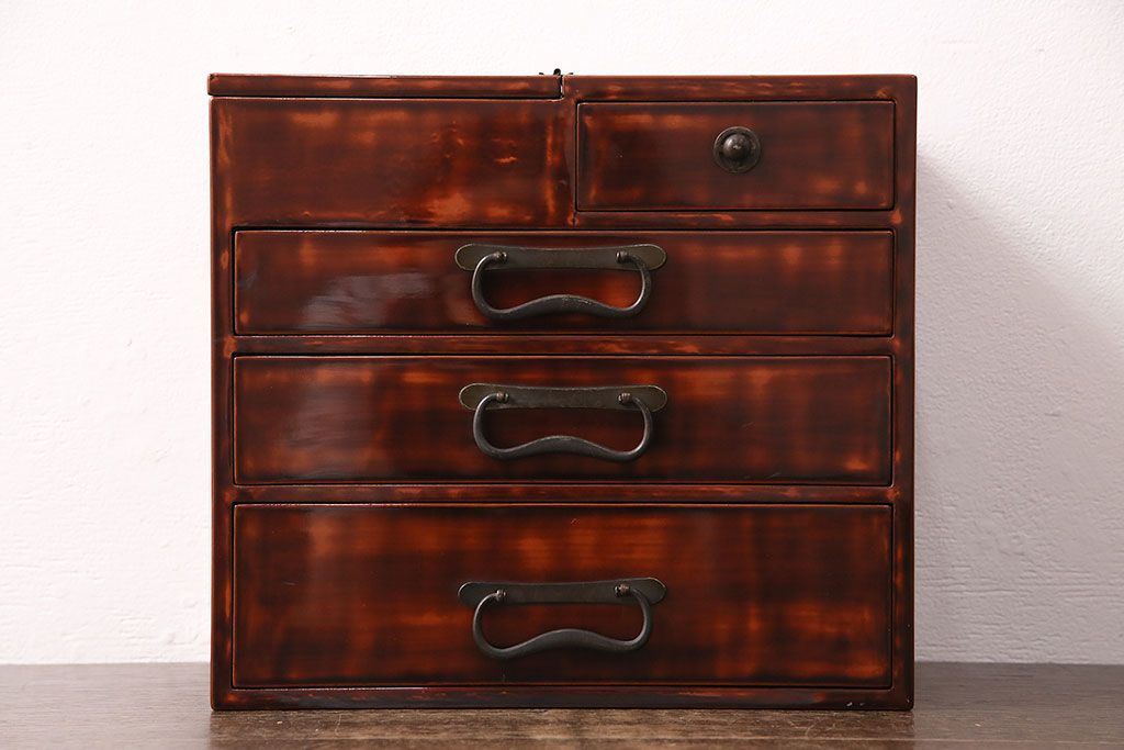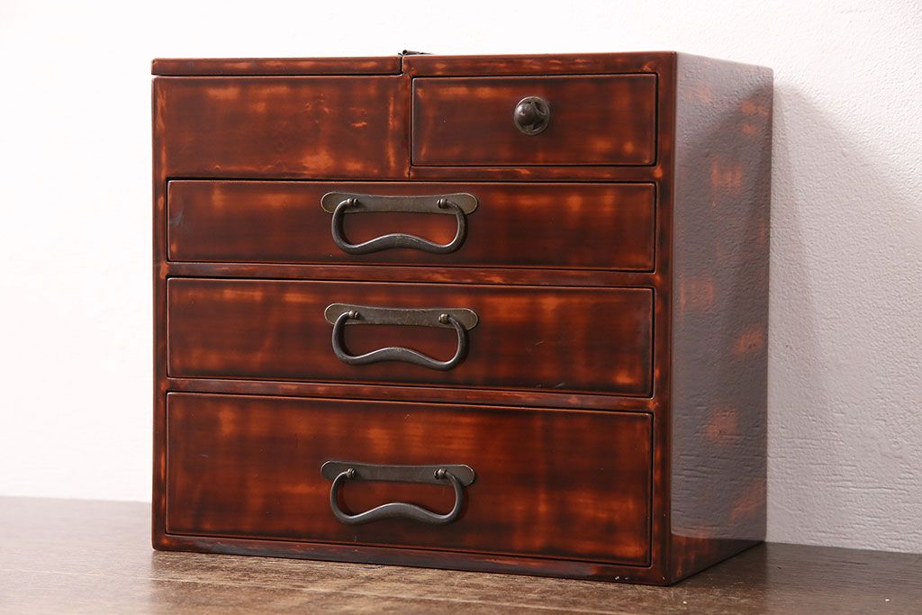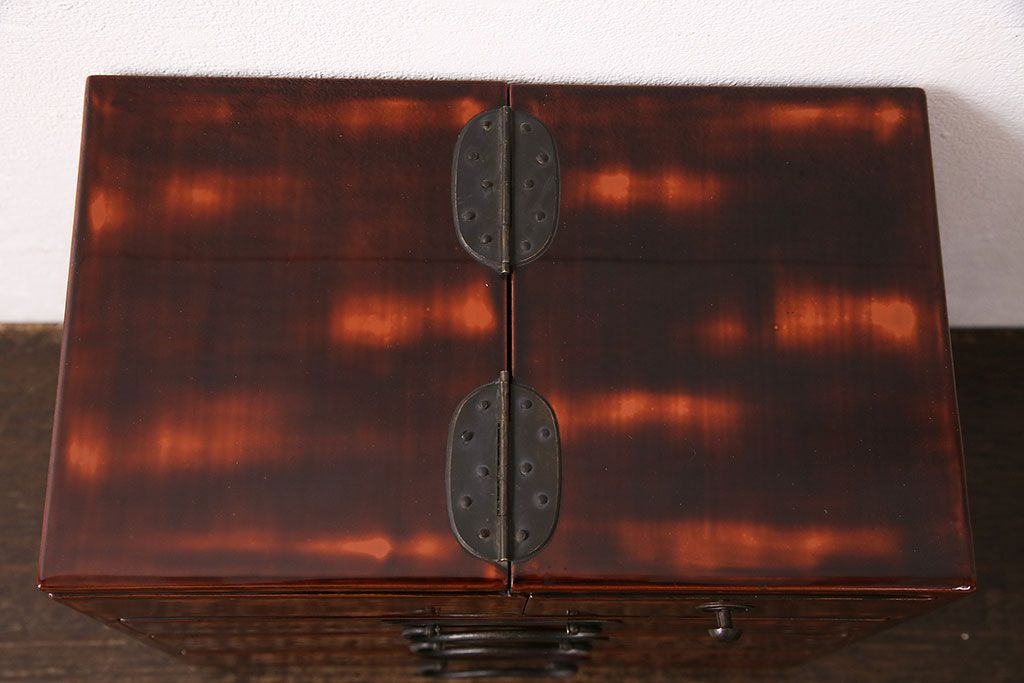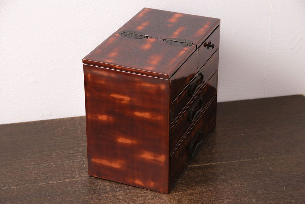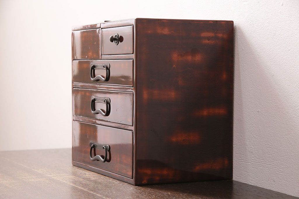 小物収納・トランク> 小引き出し > 和製アンティーク 極美品 工芸家具 総漆塗り 独特の斑模様が目を引く高級品の小引き出し(小物収納、卓上収納、裁縫箱)(R-048839)