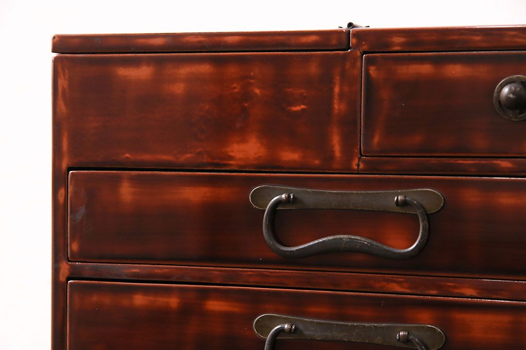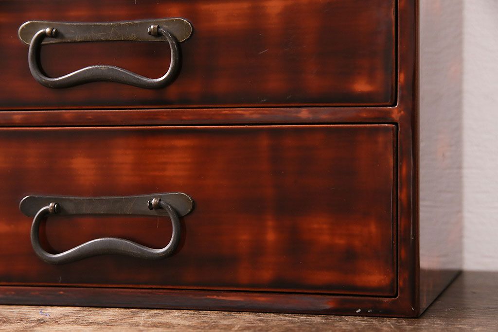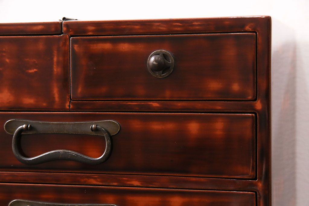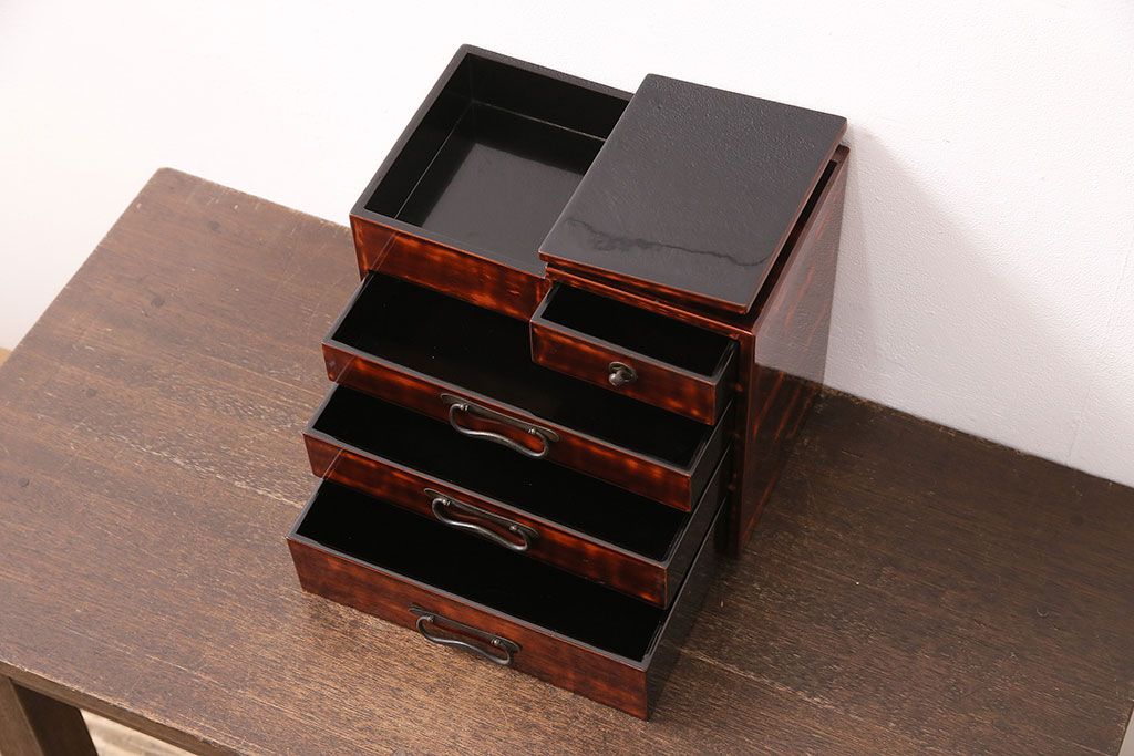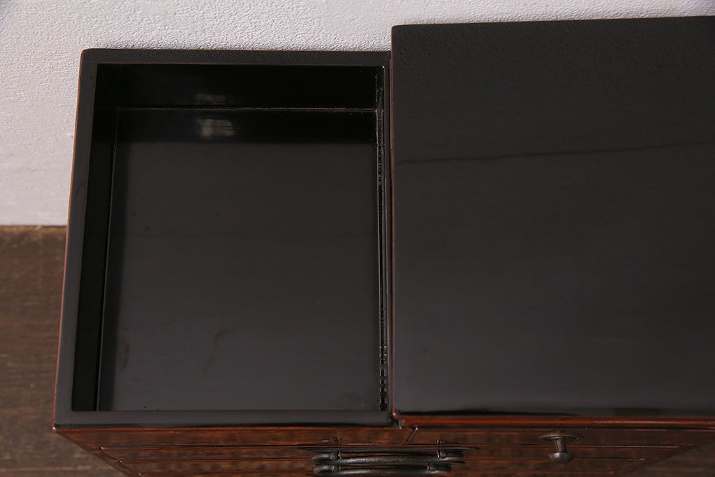 小物収納・トランク> 小引き出し > 和製アンティーク 極美品 工芸家具 総漆塗り 独特の斑模様が目を引く高級品の小引き出し(小物収納、卓上収納、裁縫箱)(R-048839)