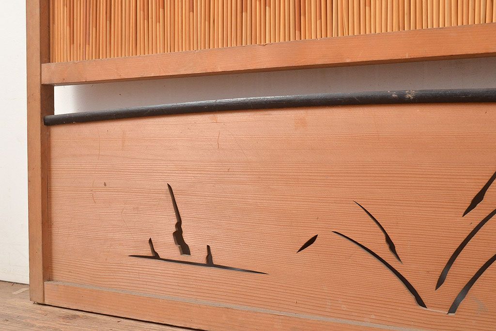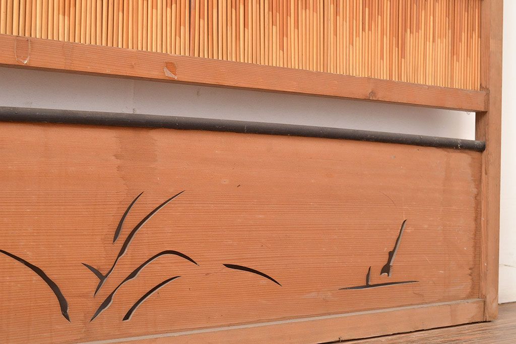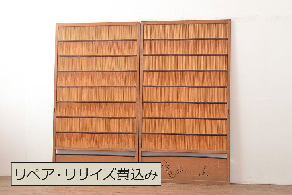 和製アンティーク 濃い色合いの竹装飾がアクセントになった御簾戸2枚セット(建具、簾戸、簀戸、葭戸、夏障子、すど、葦戸)(R-048316)