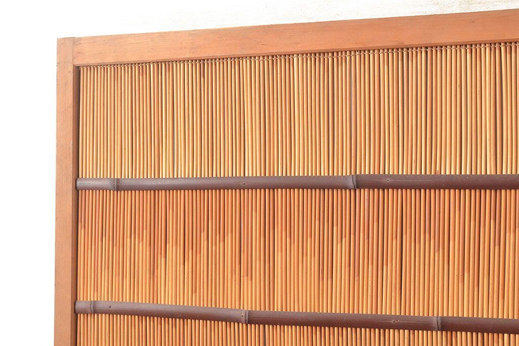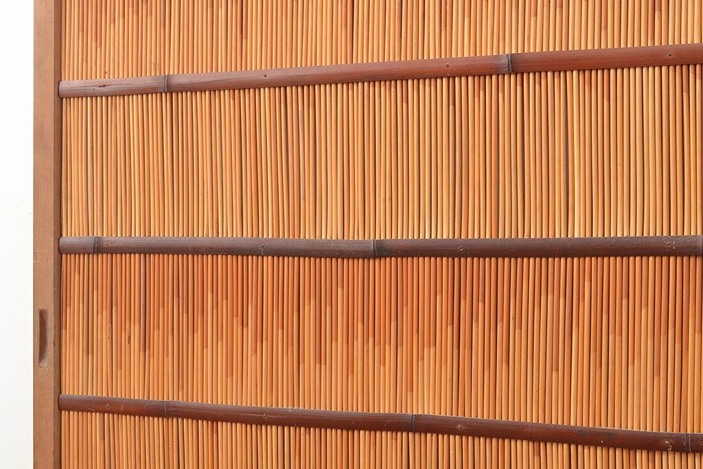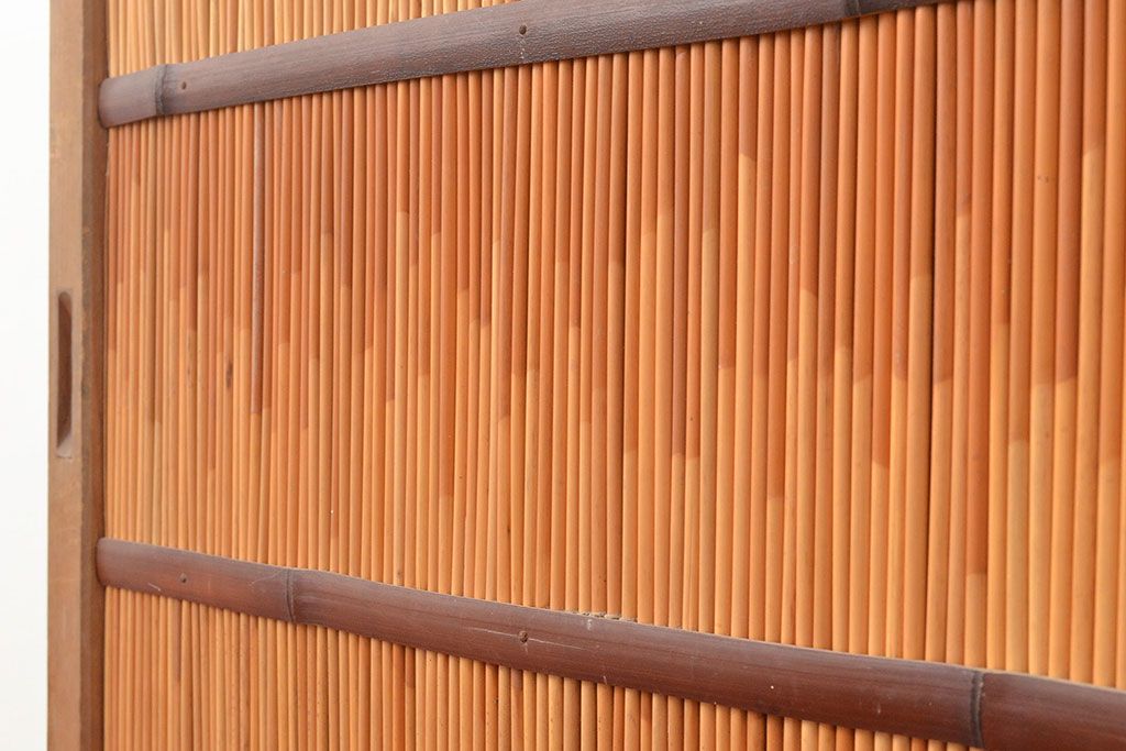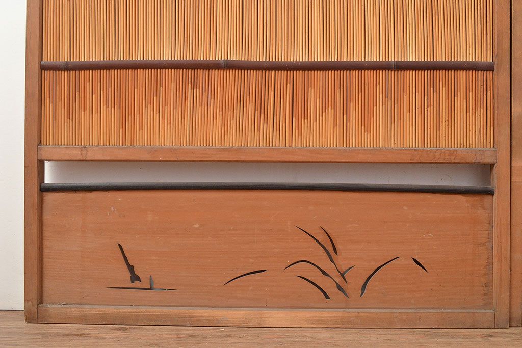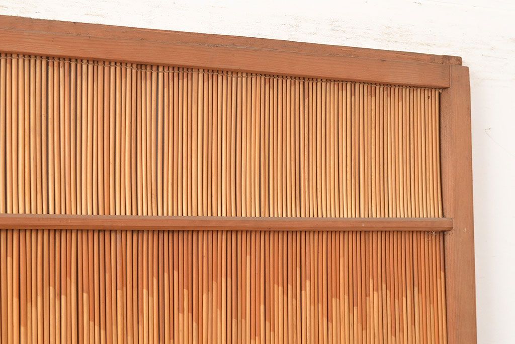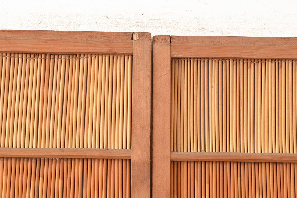 ラフジュ工房> ドア・建具> 引き戸 > 和製アンティーク 濃い色合いの竹装飾がアクセントになった御簾戸2枚セット(建具、簾戸、簀戸、葭戸、夏障子、すど、葦戸)(R-048316)