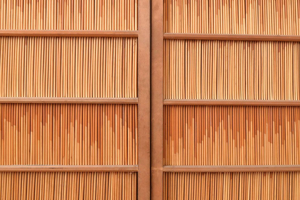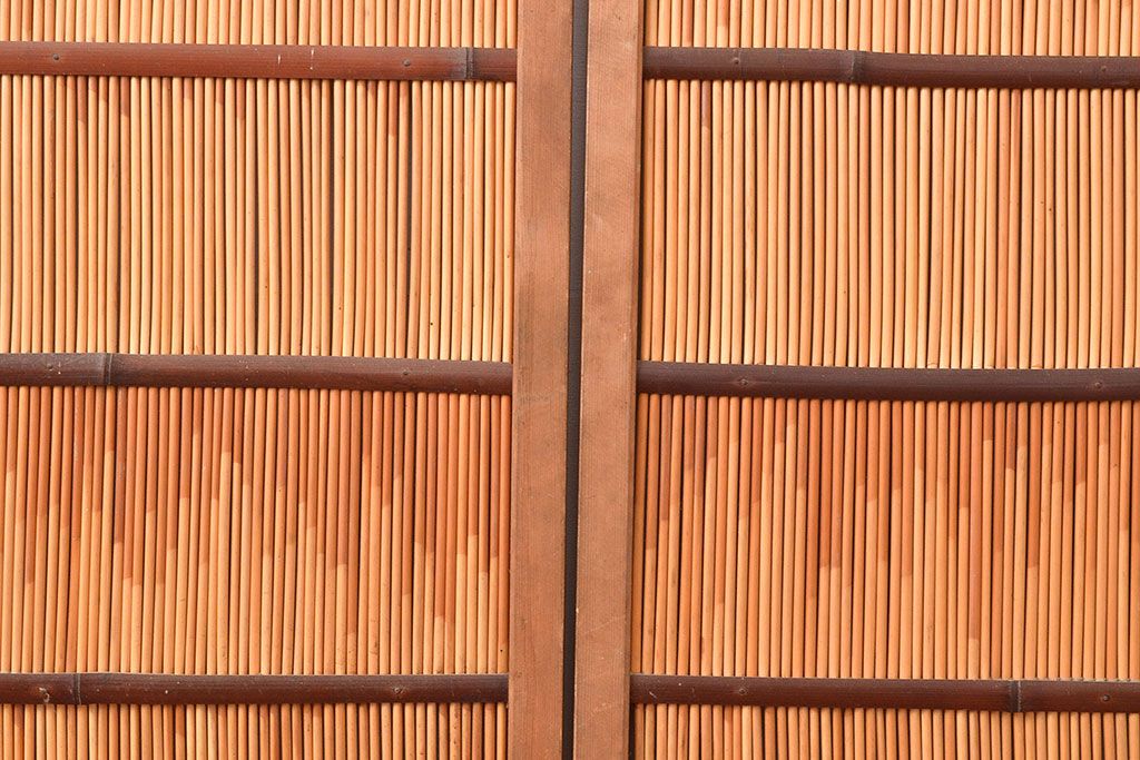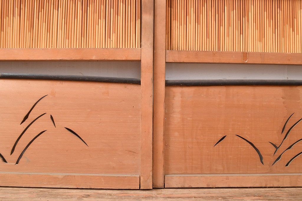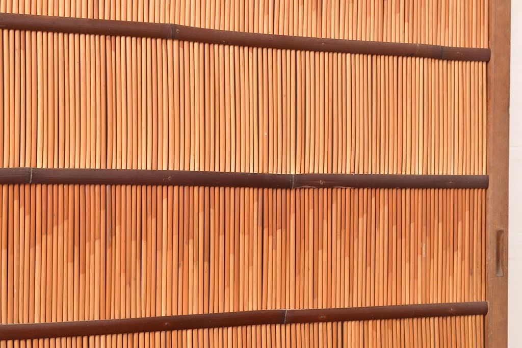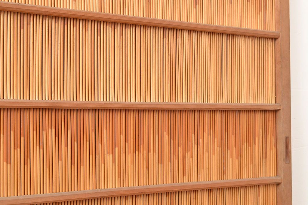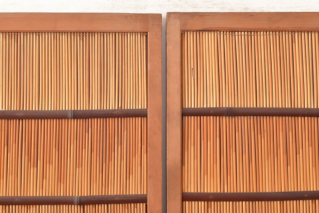 ラフジュ工房> ドア・建具> 引き戸 > 和製アンティーク 濃い色合いの竹装飾がアクセントになった御簾戸2枚セット(建具、簾戸、簀戸、葭戸、夏障子、すど、葦戸)(R-048316)