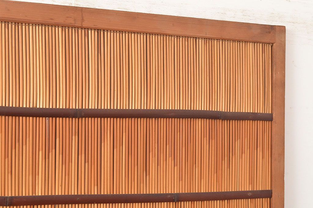 ラフジュ工房> ドア・建具> 簾戸・夏戸・網戸 > 和製アンティーク 濃い色合いの竹装飾がアクセントになった御簾戸2枚セット(建具、簾戸、簀戸、葭戸、夏障子、すど、葦戸)(R-048316)