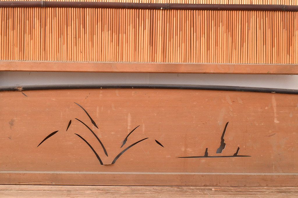 ラフジュ工房> ドア・建具> 2枚・3枚セット > 和製アンティーク 濃い色合いの竹装飾がアクセントになった御簾戸2枚セット(建具、簾戸、簀戸、葭戸、夏障子、すど、葦戸)(R-048316)