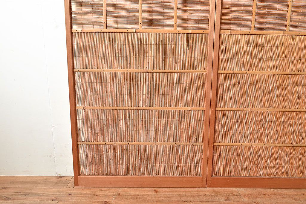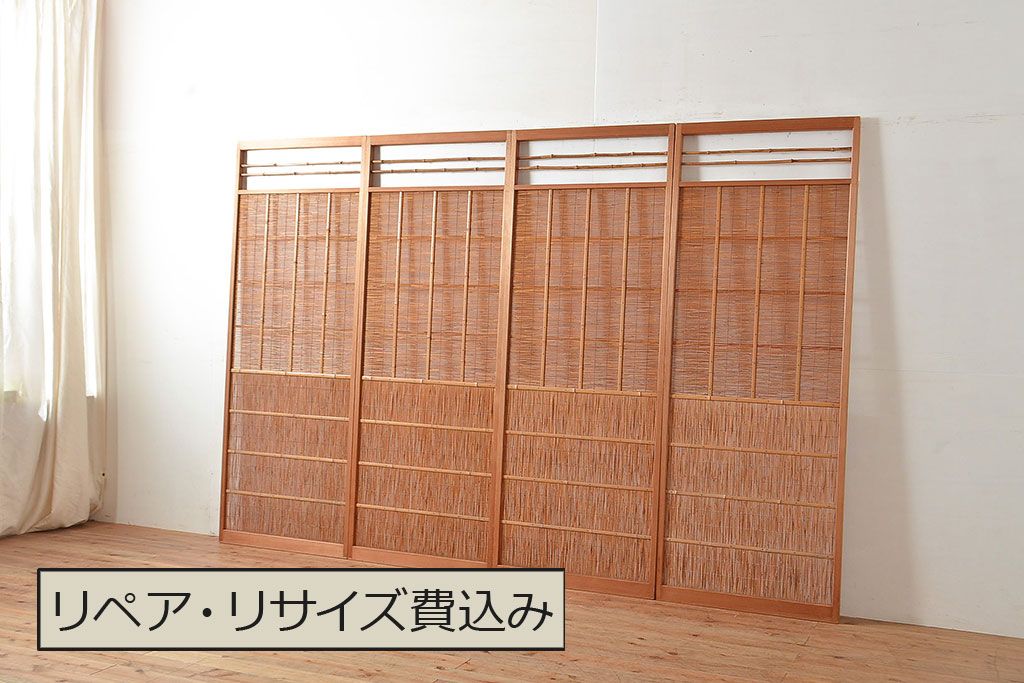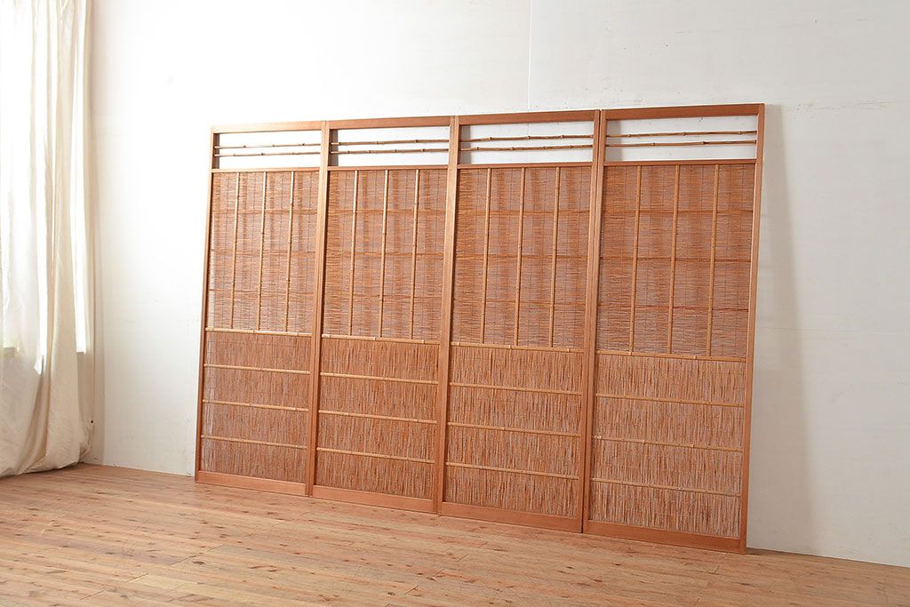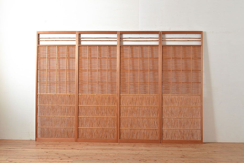 和製アンティーク 光の変化が楽しめる、異なるデザインを組み合わせた御簾戸4枚セット(建具、簾戸、簀戸、葭戸、夏障子、すど、葦戸)(R-048277)