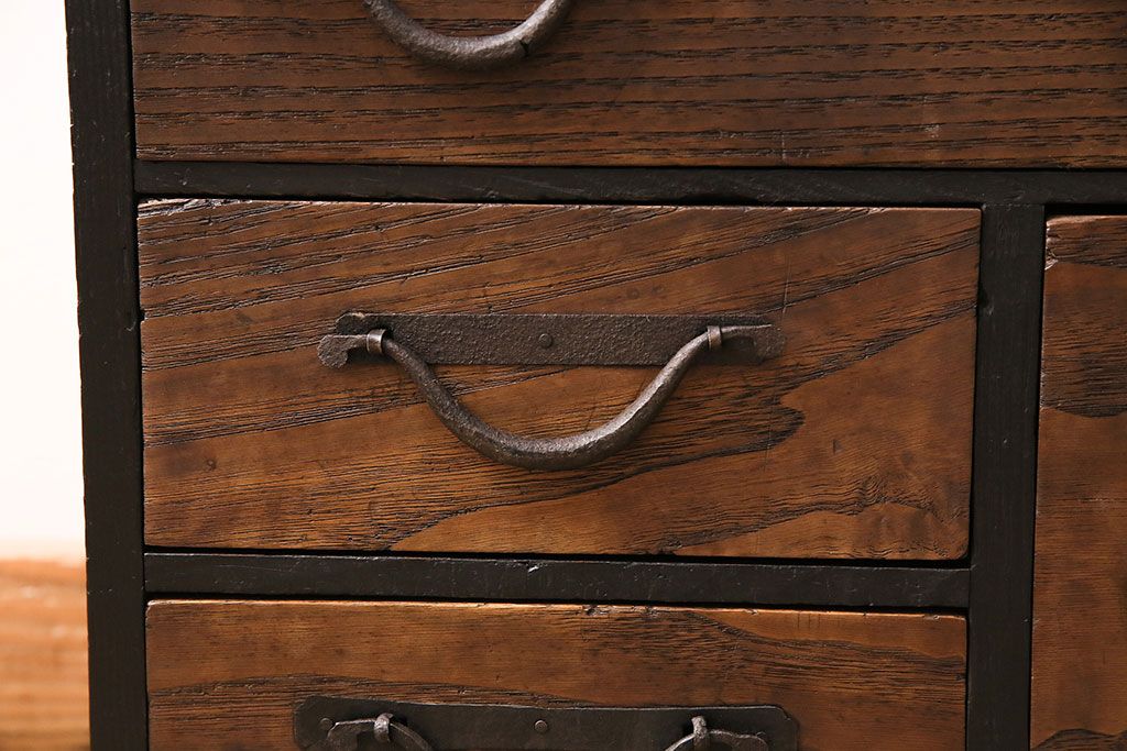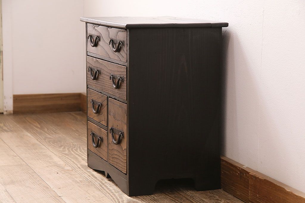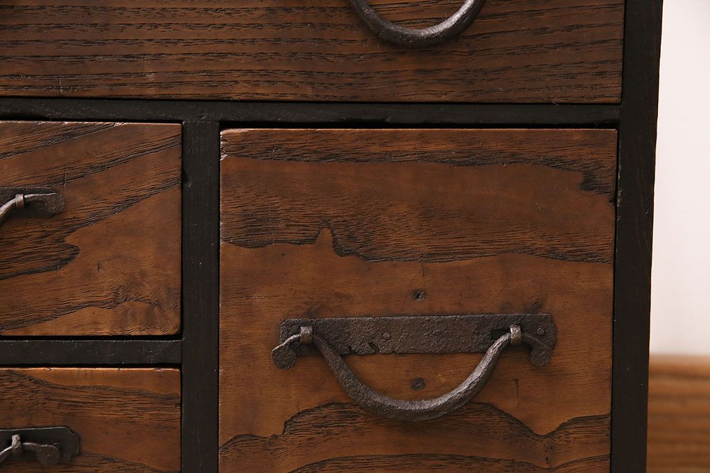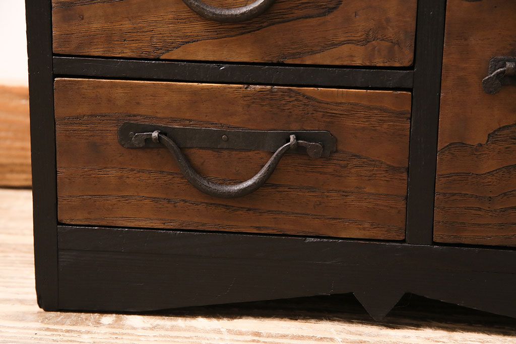 和製アンティーク 前面栗材・枠ヒノキ材 渋みを増した風合いが格好いい小引き出し(小物収納、サイドチェスト)(R-048881)