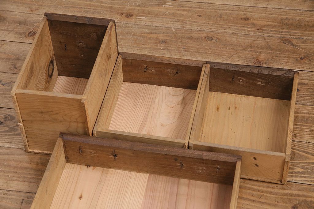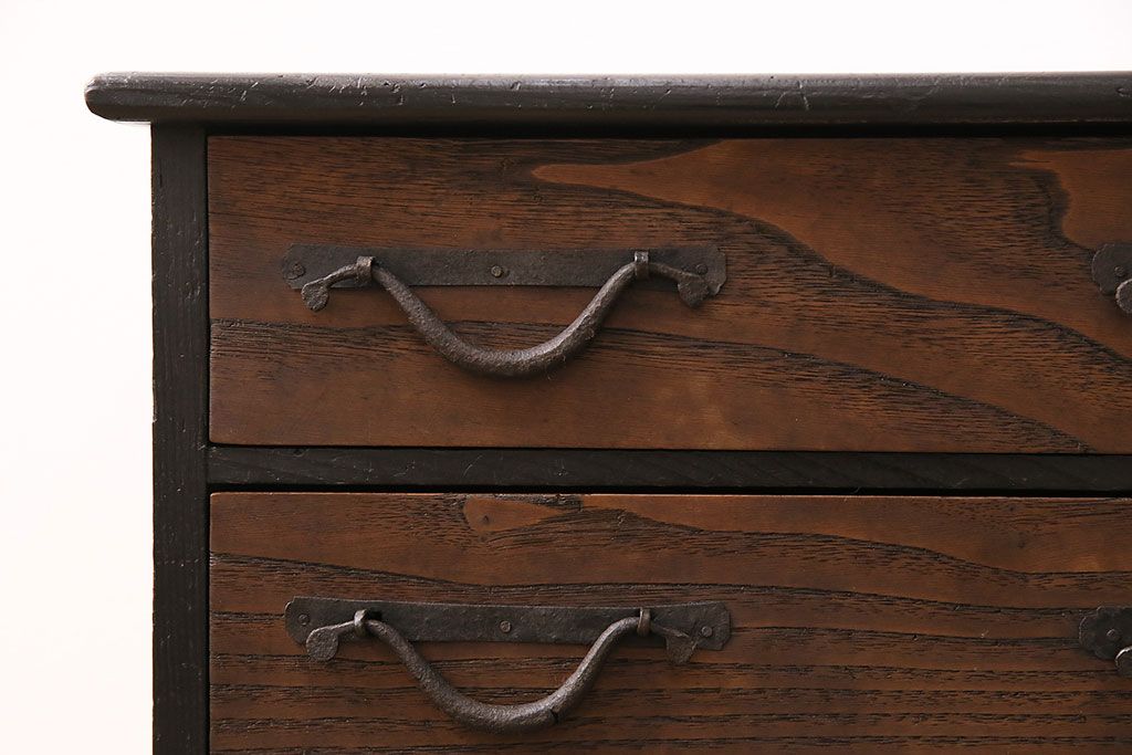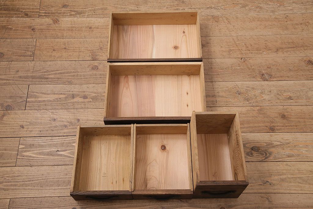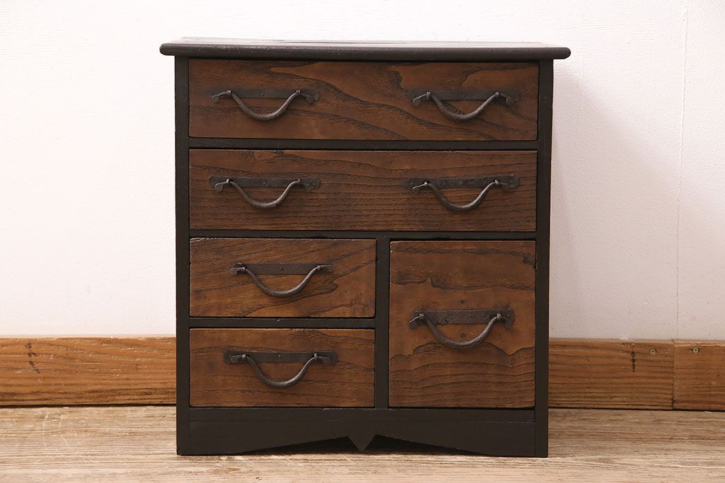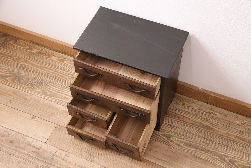 和製アンティーク 前面栗材・枠ヒノキ材 渋みを増した風合いが格好いい小引き出し(小物収納、サイドチェスト)(R-048881)