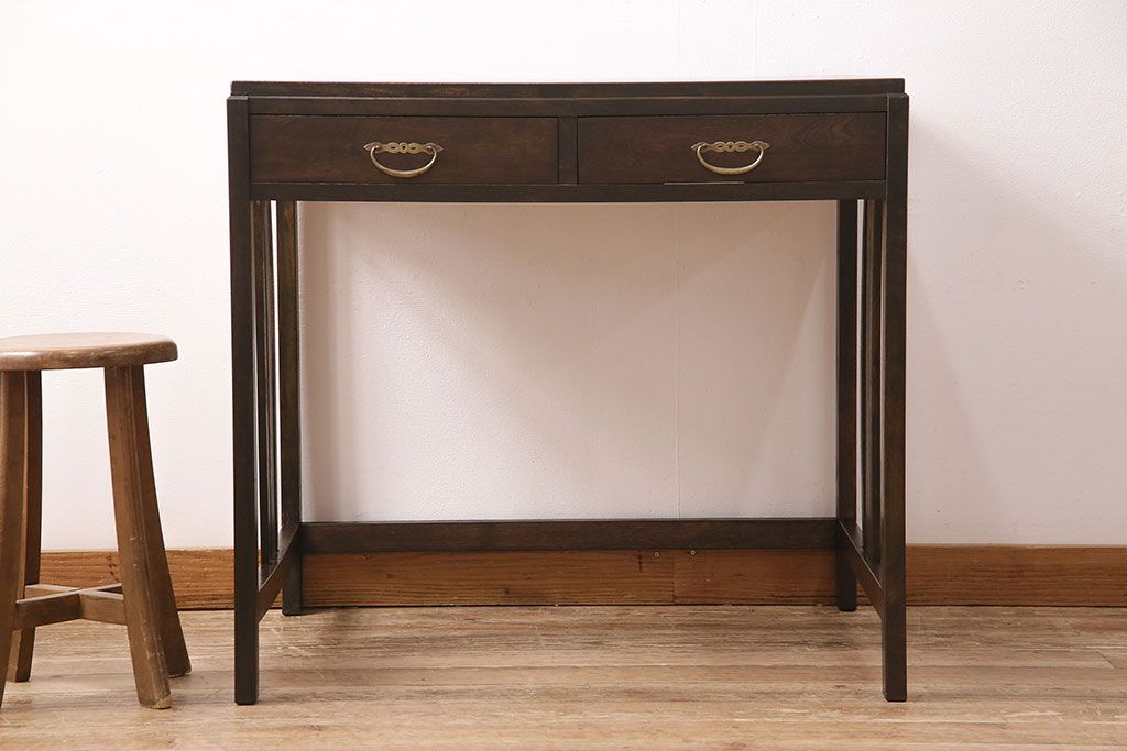 デスク> ワークデスク > 昭和初期の平机の見た目を変えずに綺麗にリペア!可動部の調整。傷補修。現状に近しい色味に着色し仕上げ。(ワークデスク、在宅ワーク)
