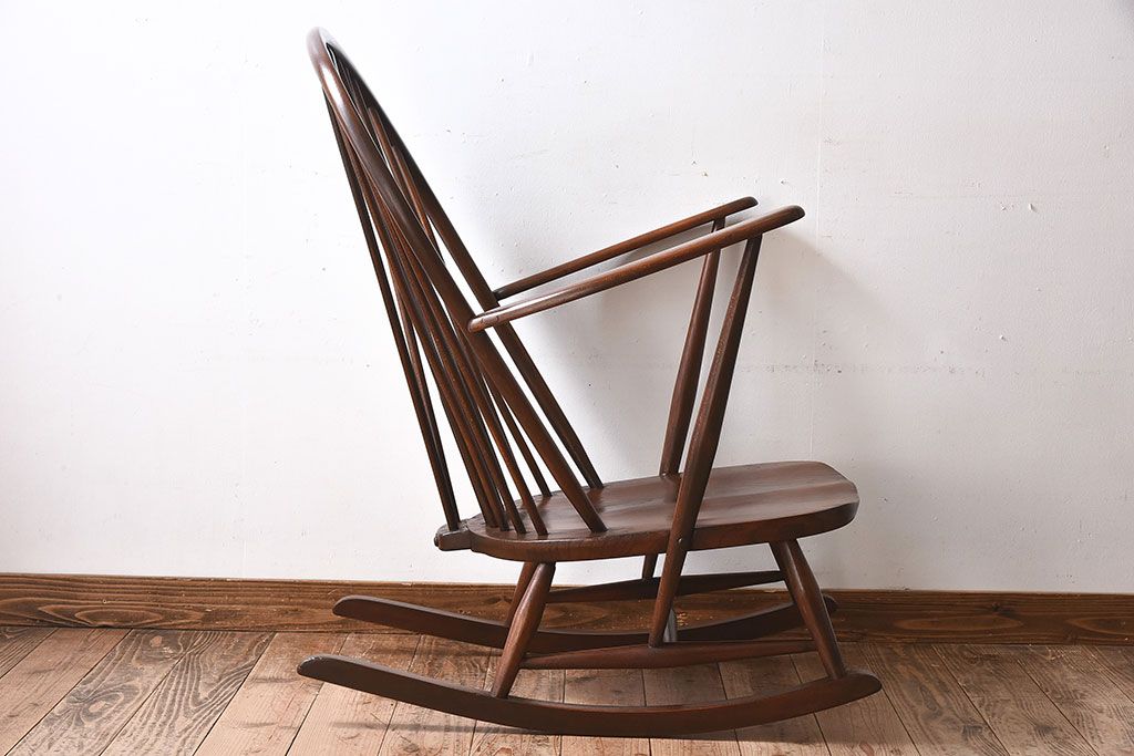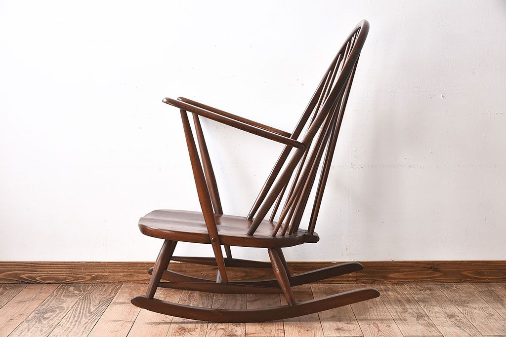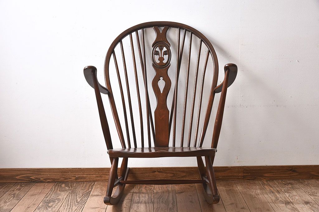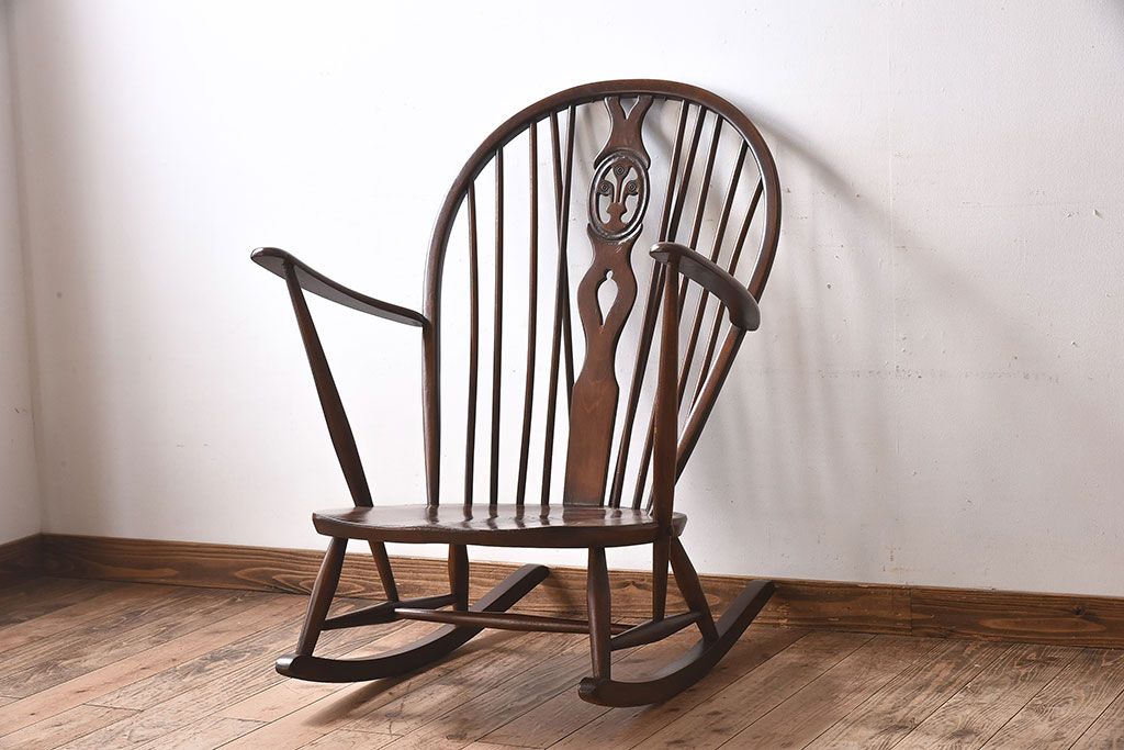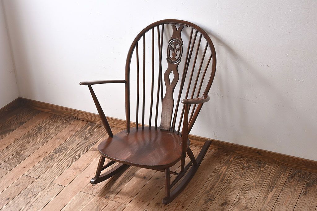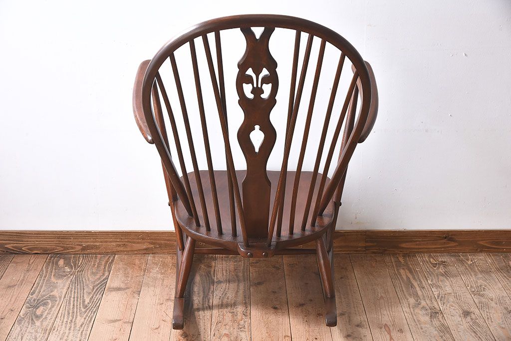 イギリスアンティーク ERCOL(アーコール) Windsor(ウィンザー)シリーズ アザミの花の透かし彫りが上品なロッキングチェア(椅子、アームチェア)(R-048874)
