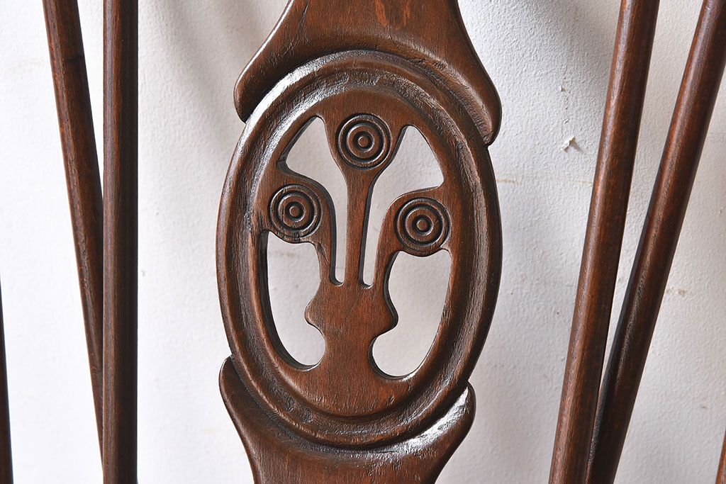 椅子・ベンチ> ロッキングチェア > イギリスアンティーク ERCOL(アーコール) Windsor(ウィンザー)シリーズ アザミの花の透かし彫りが上品なロッキングチェア(椅子、アームチェア)(R-048874)
