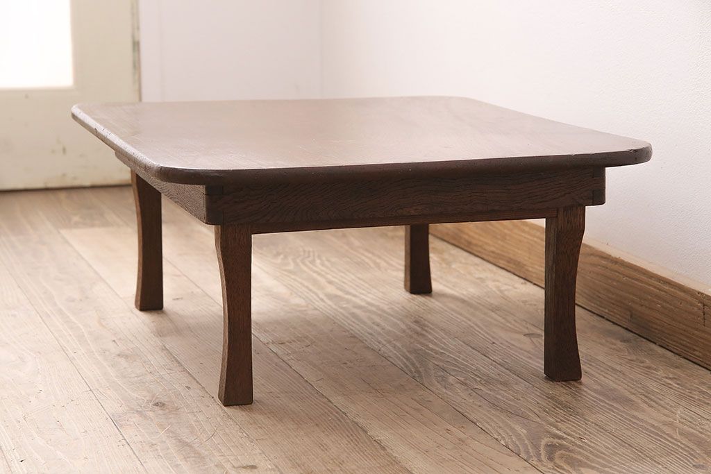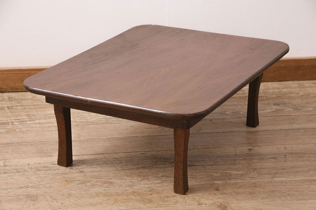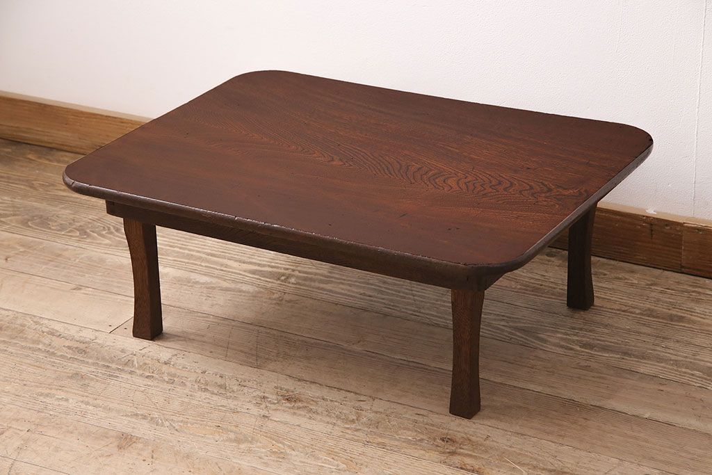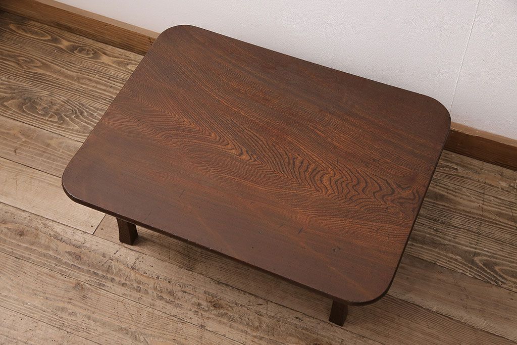 テーブル> 座卓 > 和製アンティーク 栓材 鮮明な木目が魅力!懐かしさ漂うシンプルなちゃぶ台(座卓、折り畳みテーブル、ローテーブル)(R-048864)