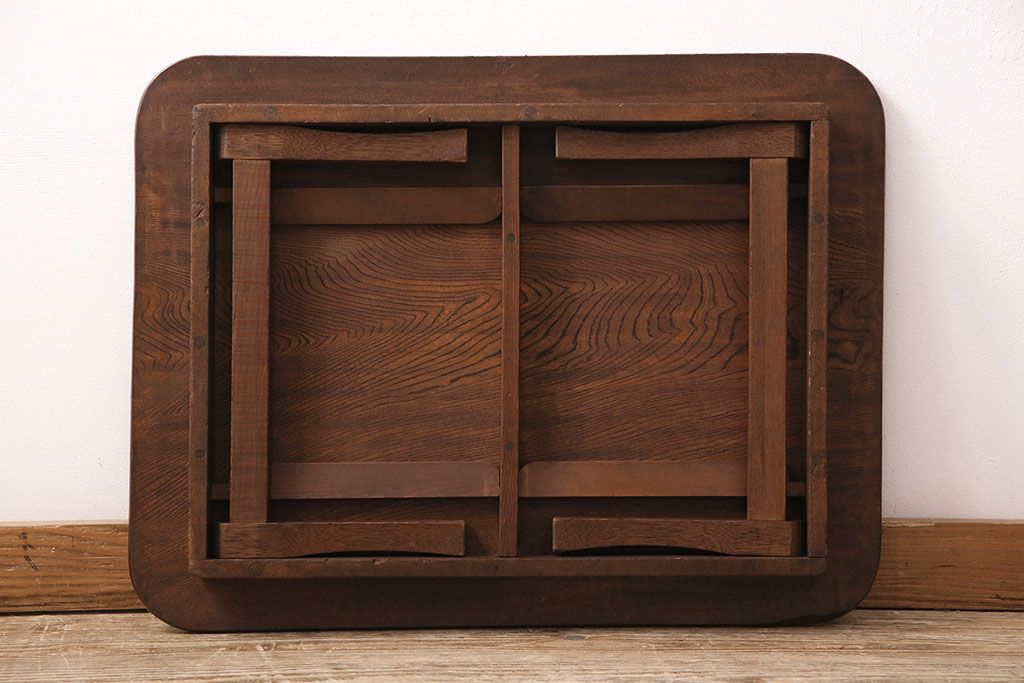 テーブル> おりたたみテーブル > 和製アンティーク 栓材 鮮明な木目が魅力!懐かしさ漂うシンプルなちゃぶ台(座卓、折り畳みテーブル、ローテーブル)(R-048864)